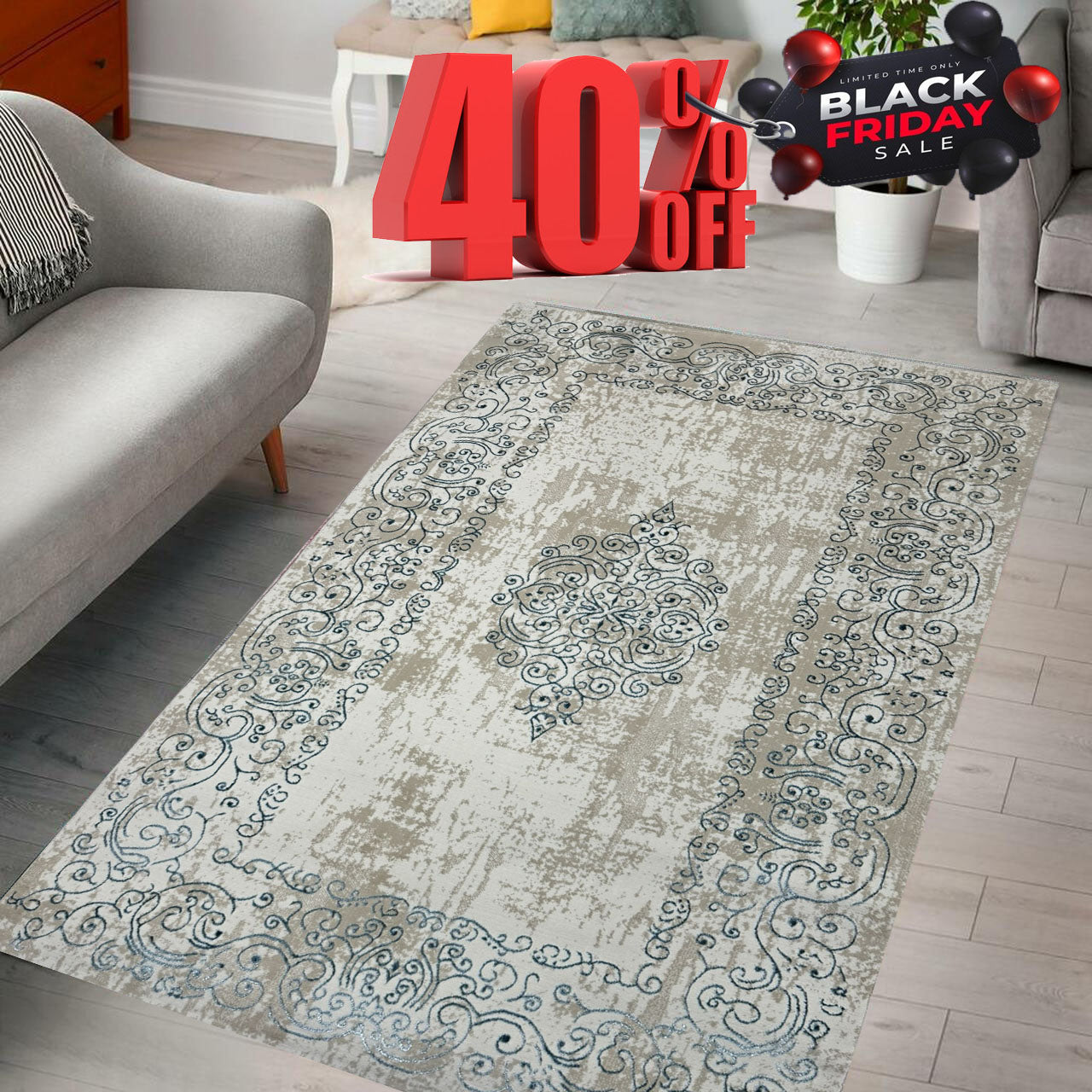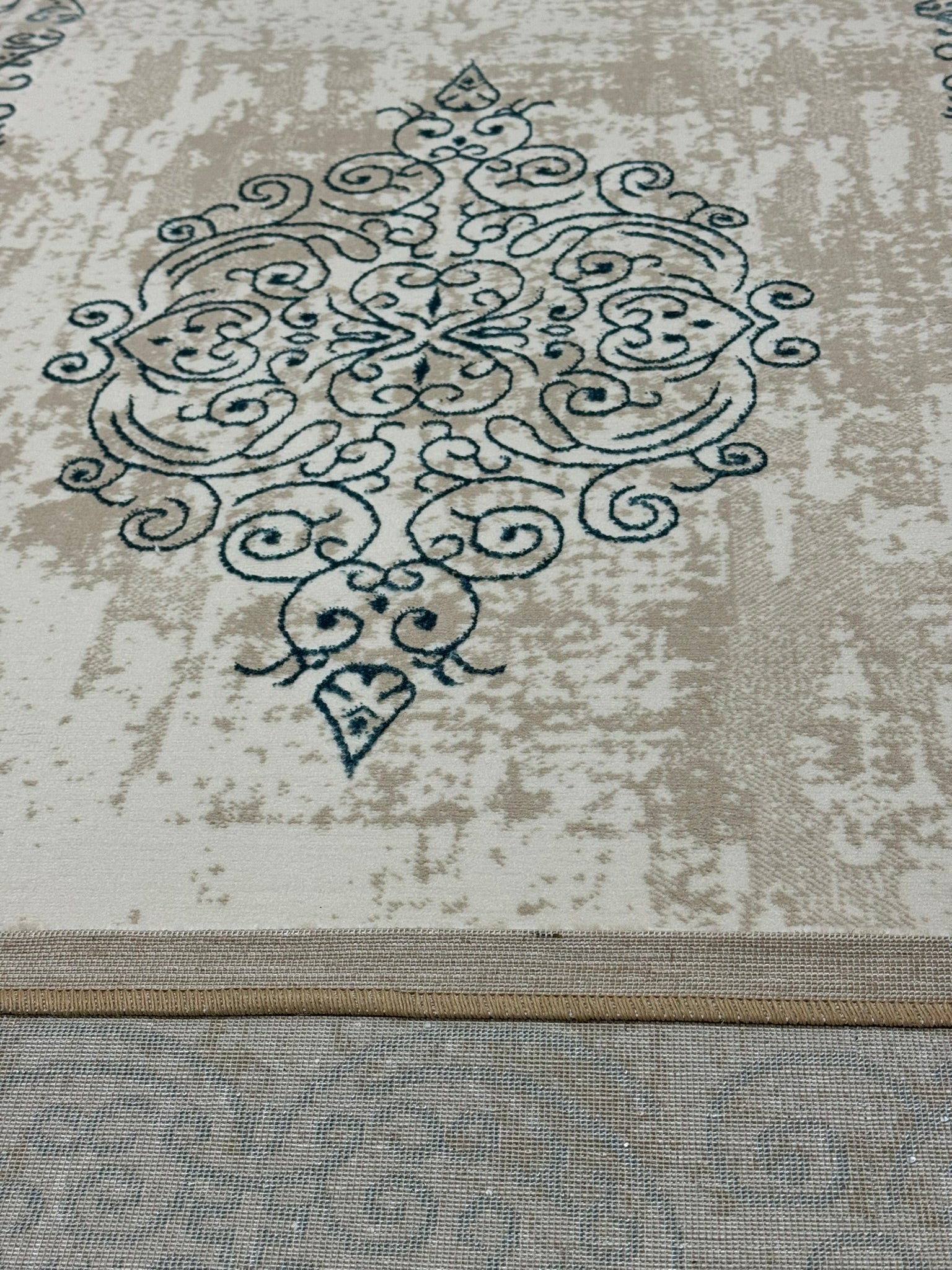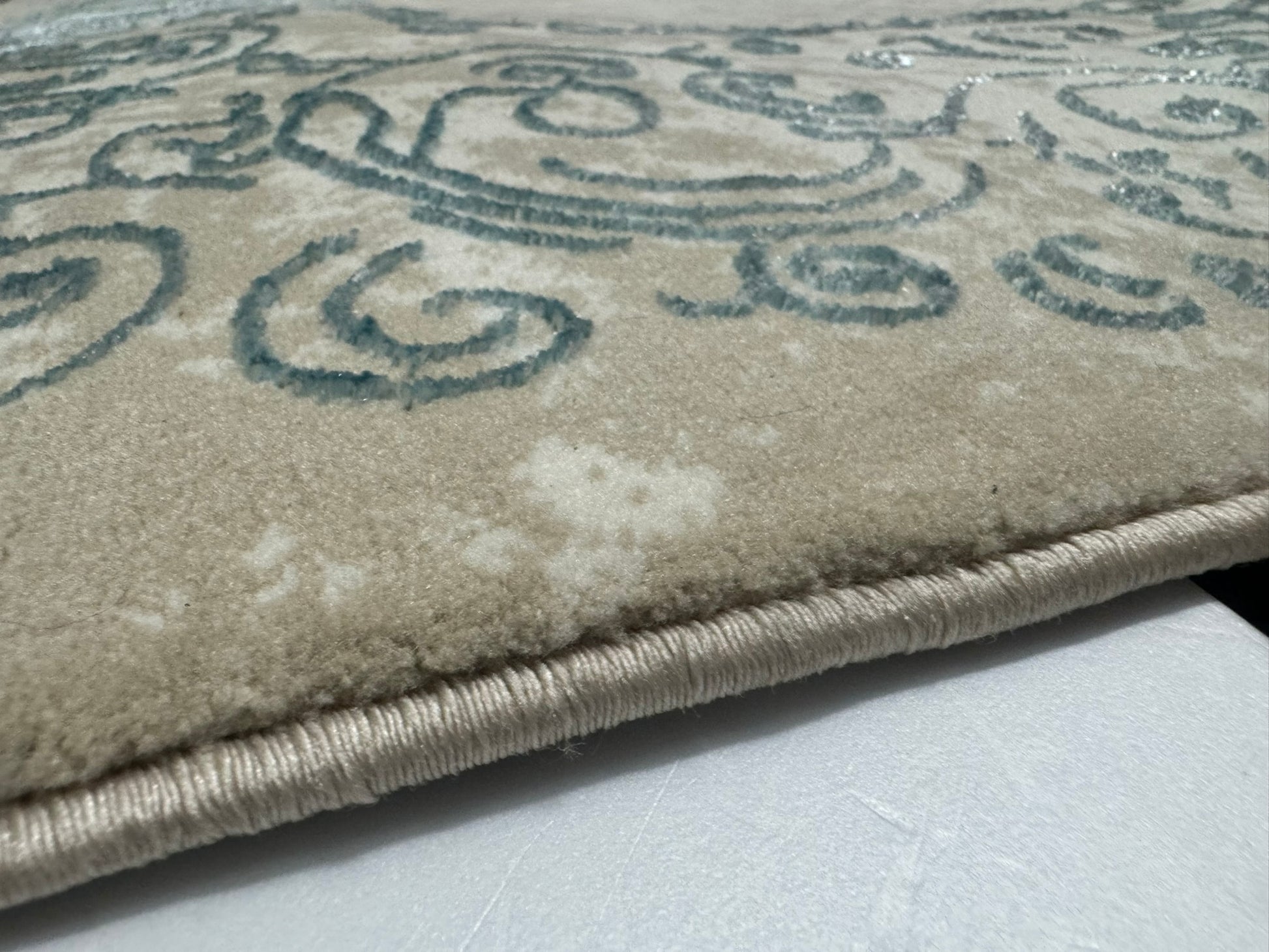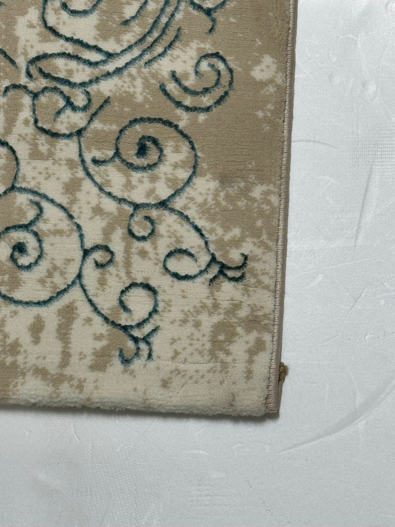 Covor Premium cu Insertii Tip Hena , Turqoise/Crem