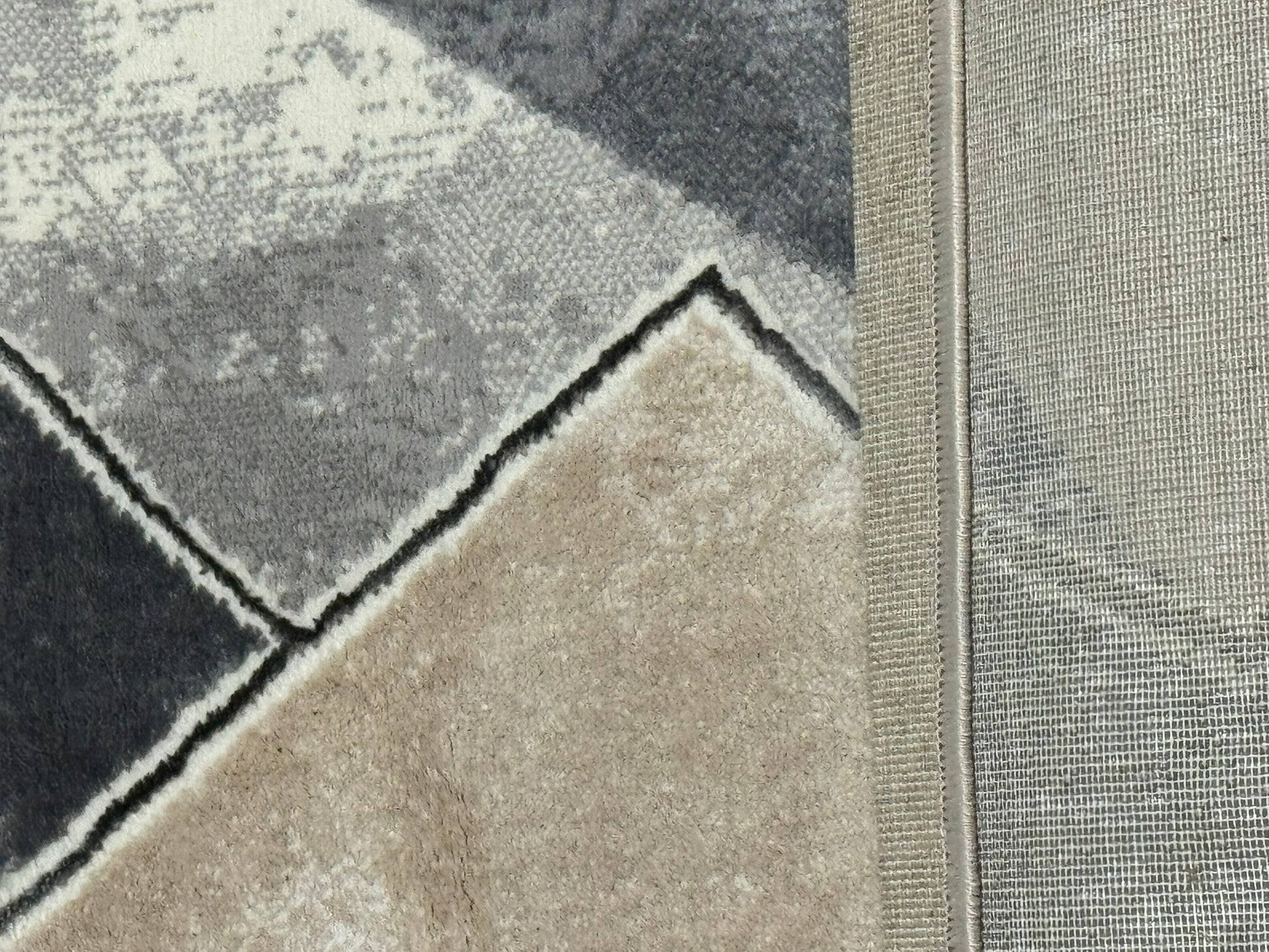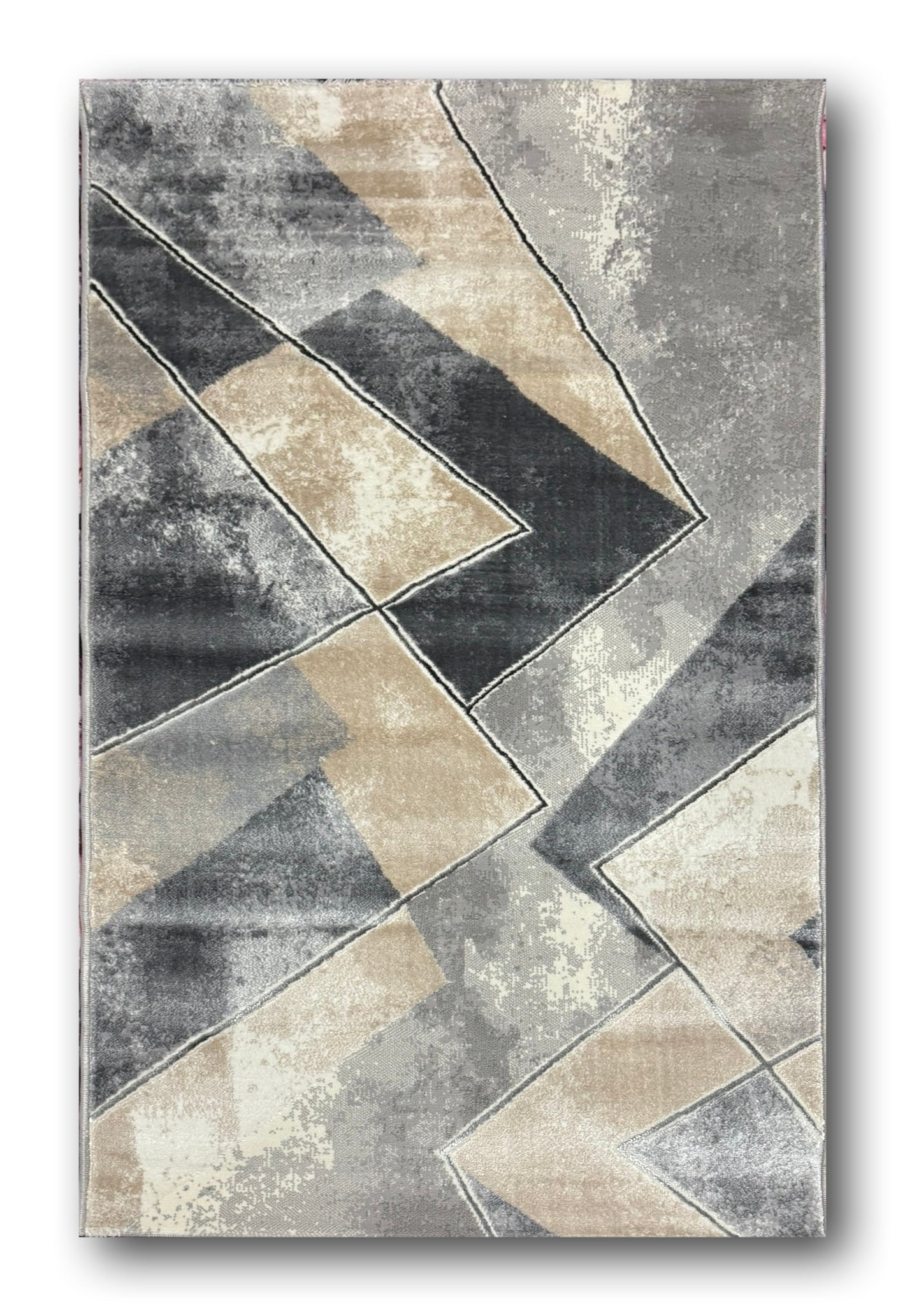 Covor Premium Model Modern cu Dreptunghiuri si Lini,Gri/Bej