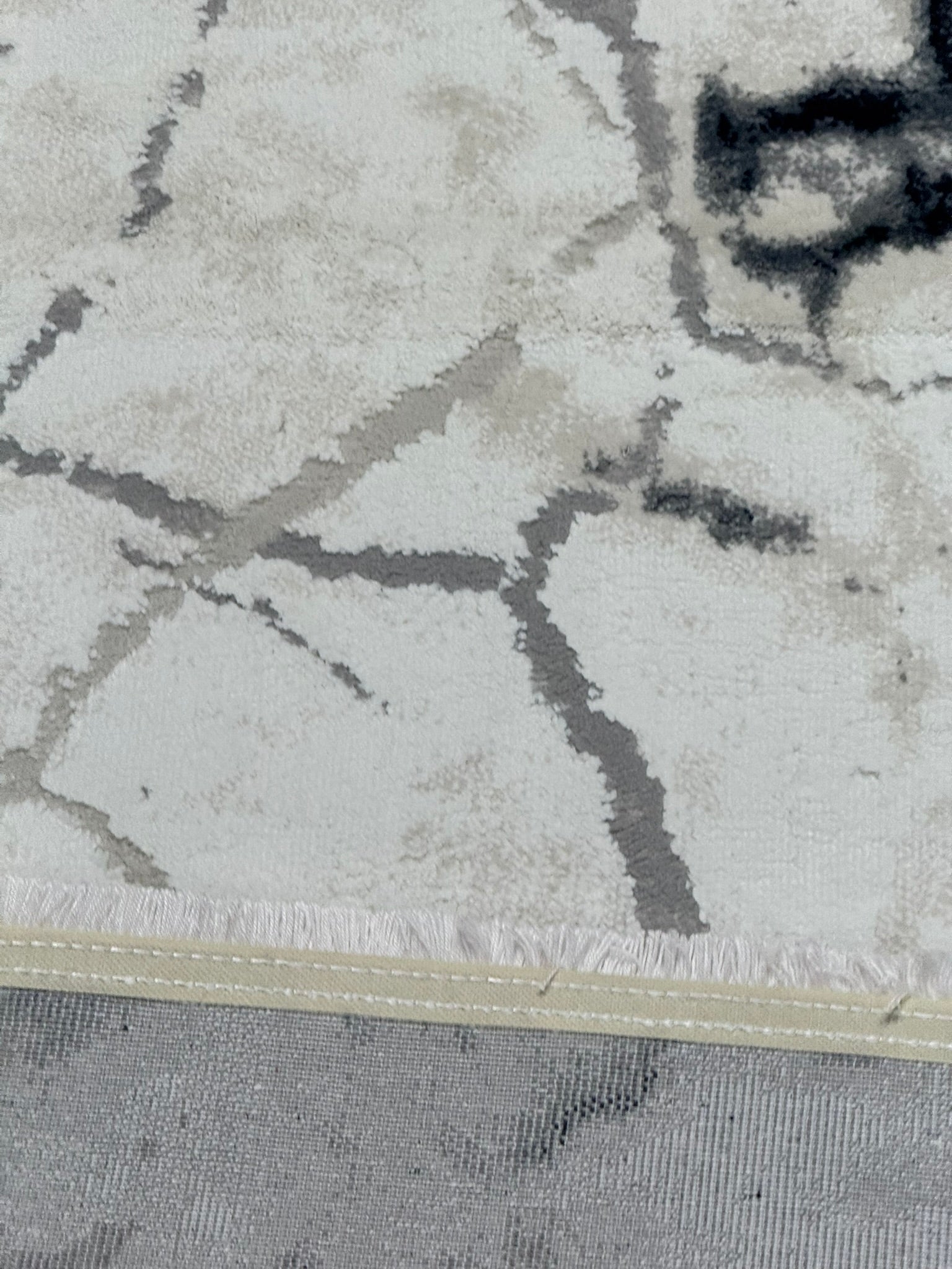Covor Premium Modern Cu Insertii Moderne si Franjuri,Gri/Bej/Gri Antracit