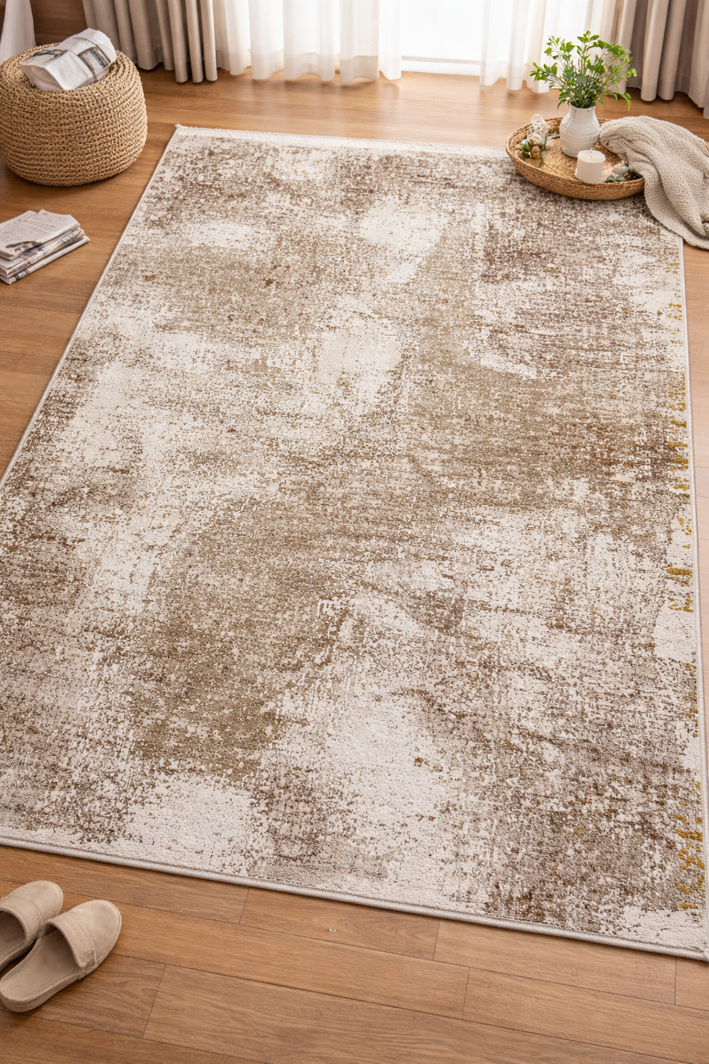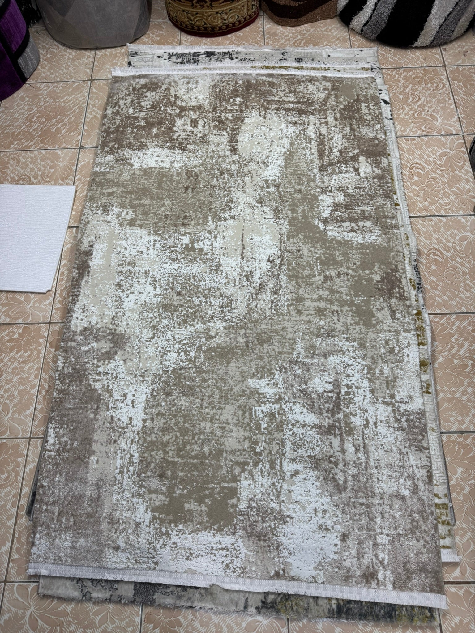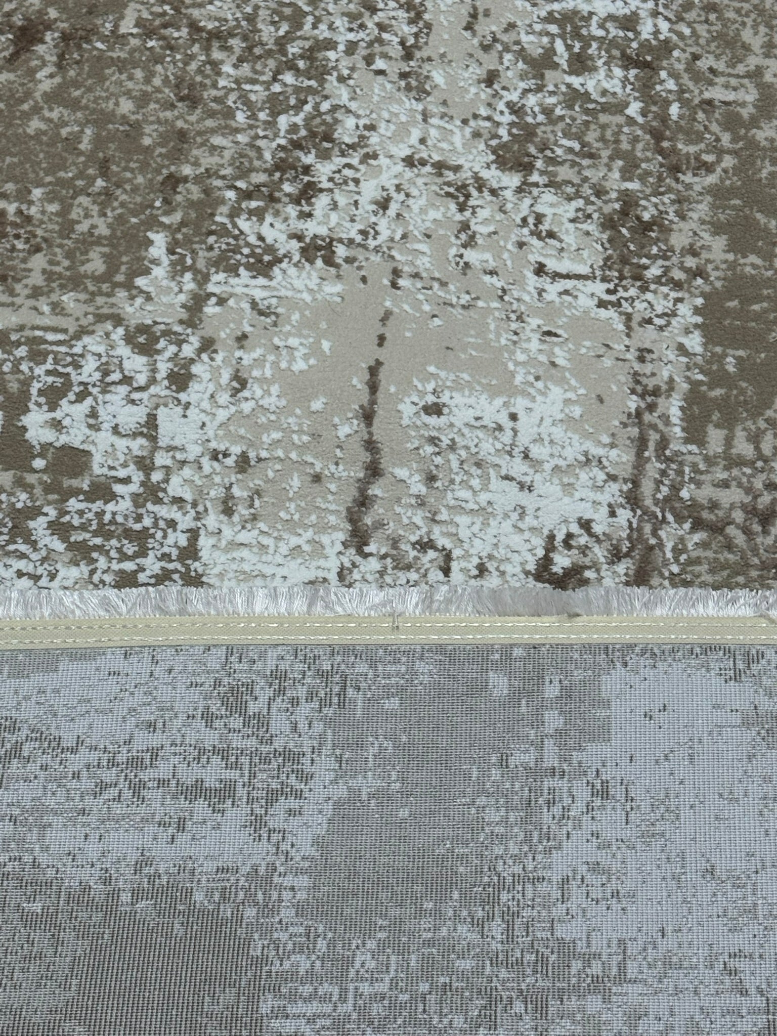 Covor Premium Modern Cu Insertii Moderne si Franjuri ,Bej/Crem