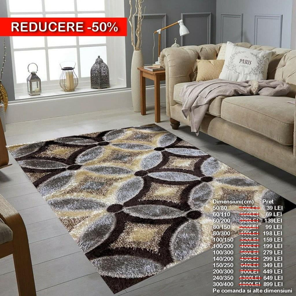 Covor Pufos cu Fir de Matase,Bej/Maro