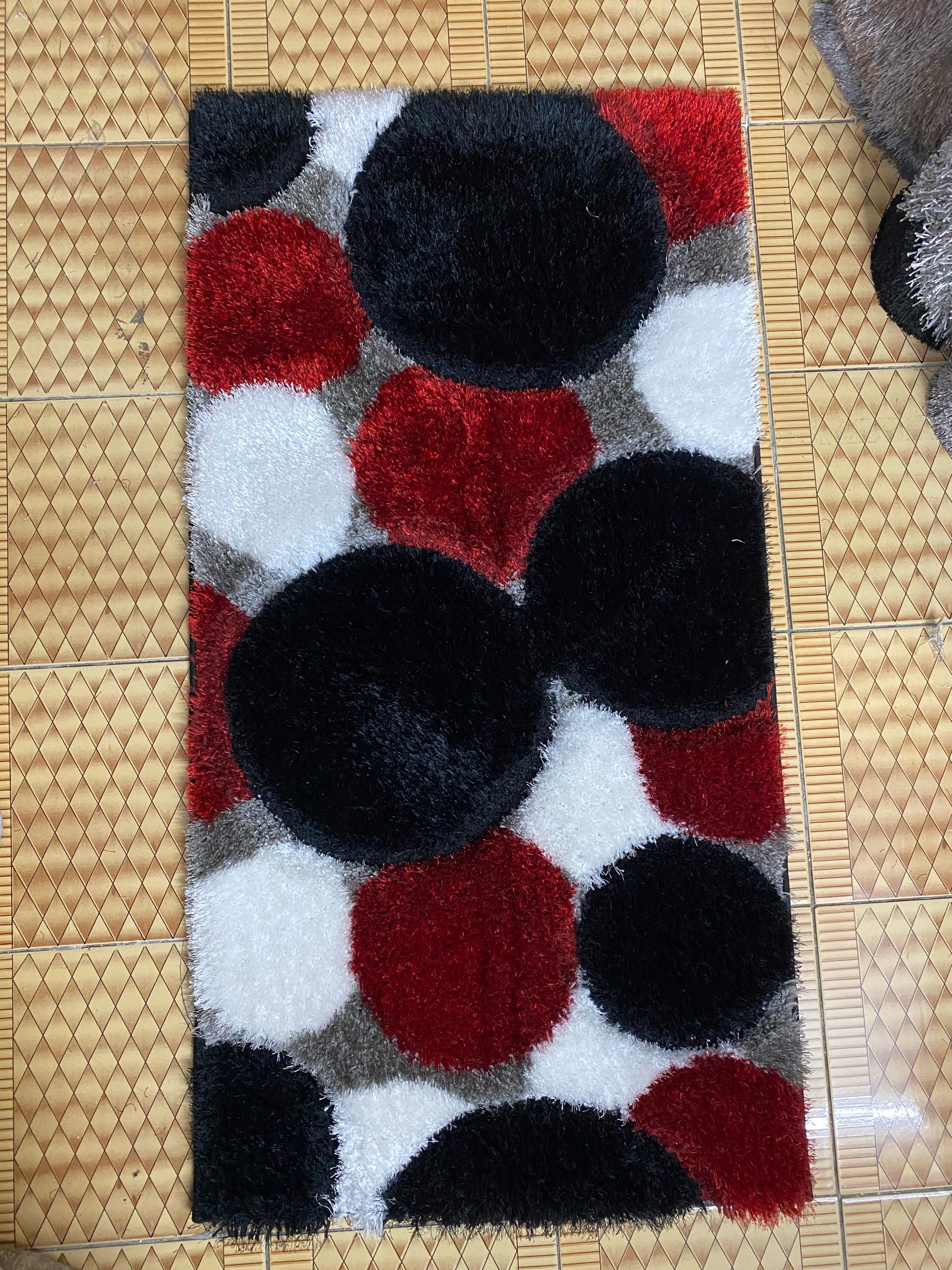 Covor Pufos cu Fir de Matase si Bumbac tip Buline ,Grena/Negru/Gri