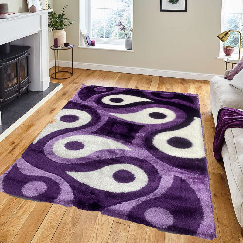 Covor Pufos cu Fir de Matase Tip Lacrima,Mov/Alb