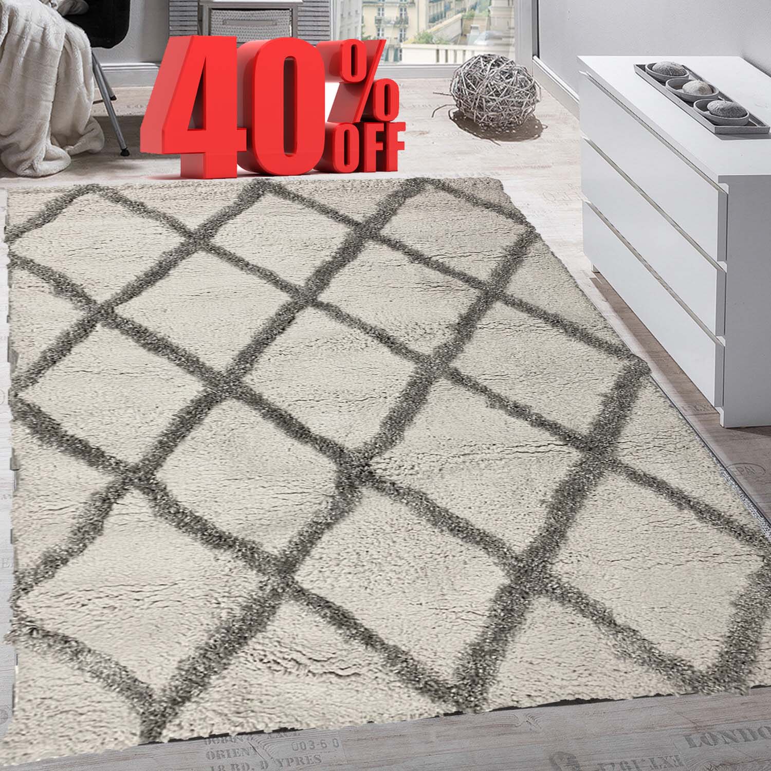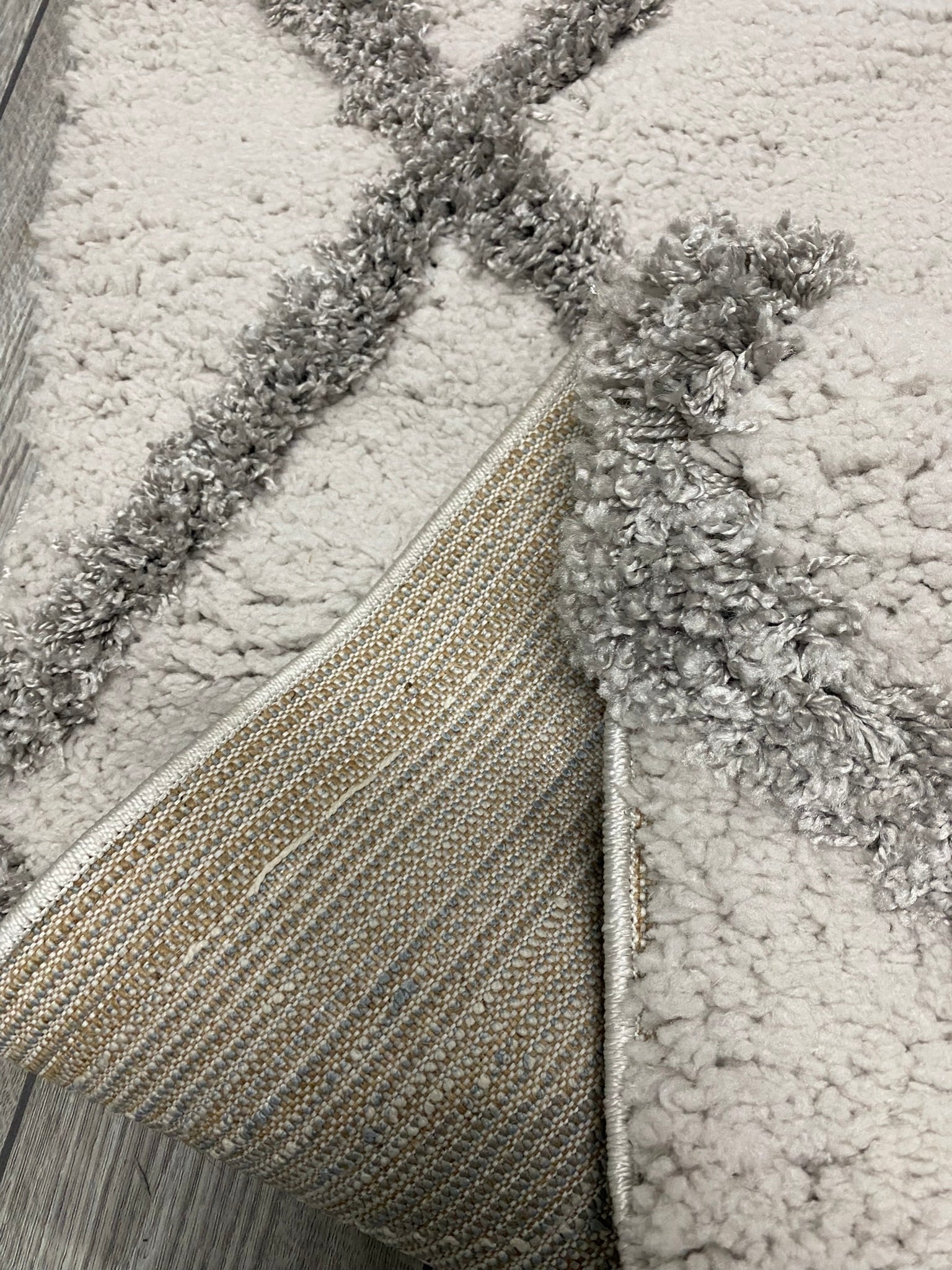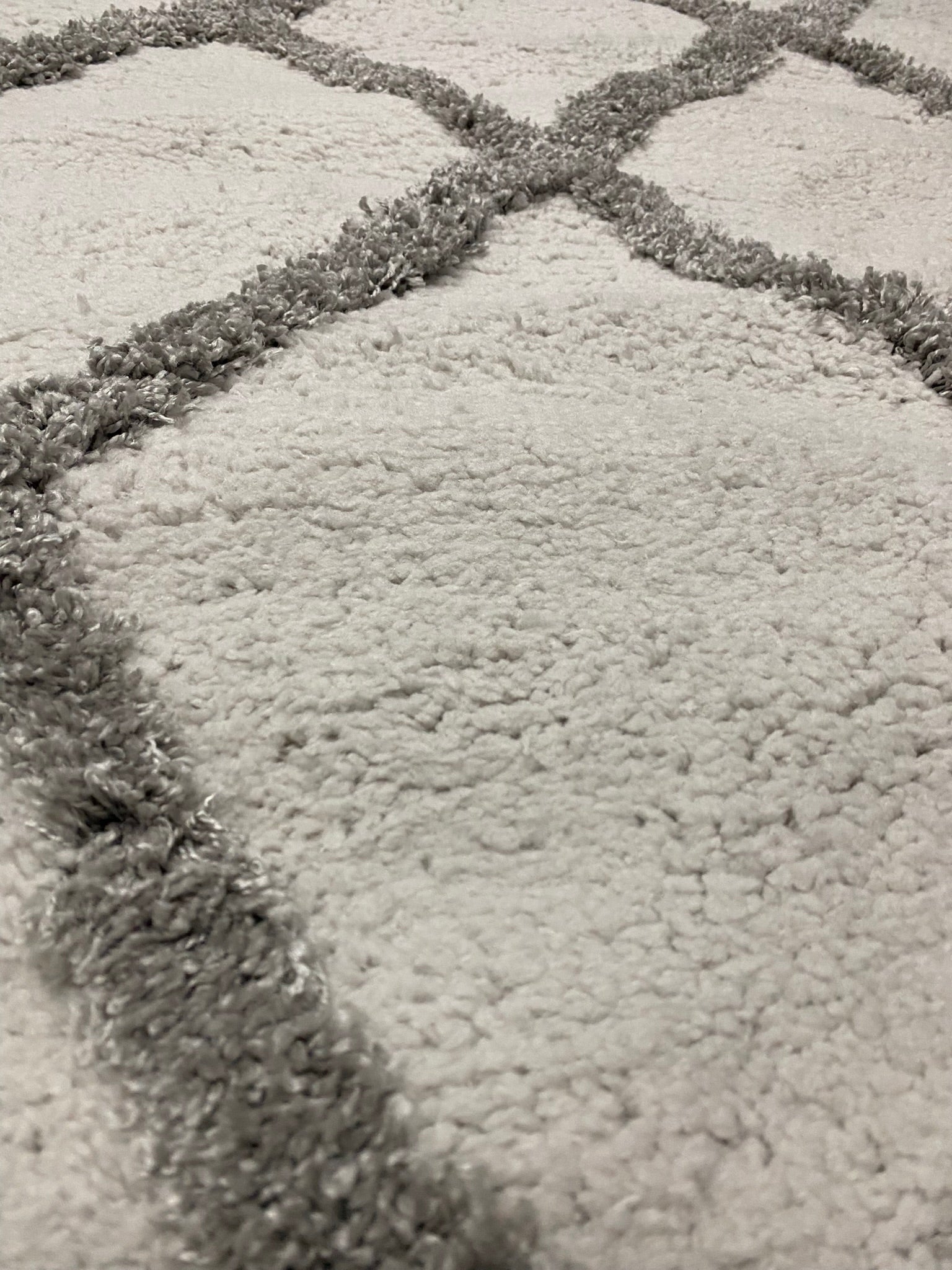 Covor Pufos Cu Insertii tip Romb ,Gri/Alb