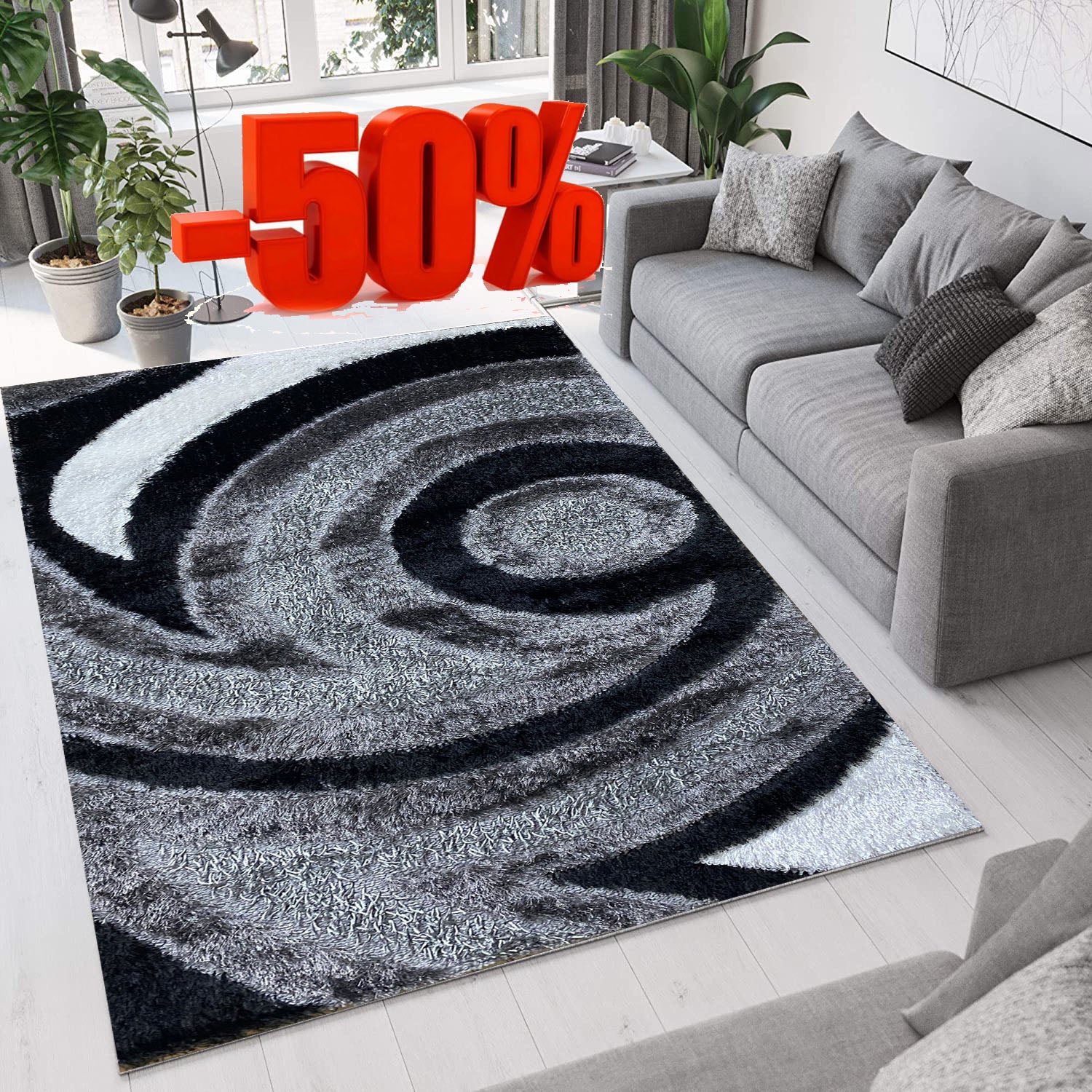 Covor Pufos cu Insertii tip Taifun,cu Fire de Matase Gri/Negru/Alb