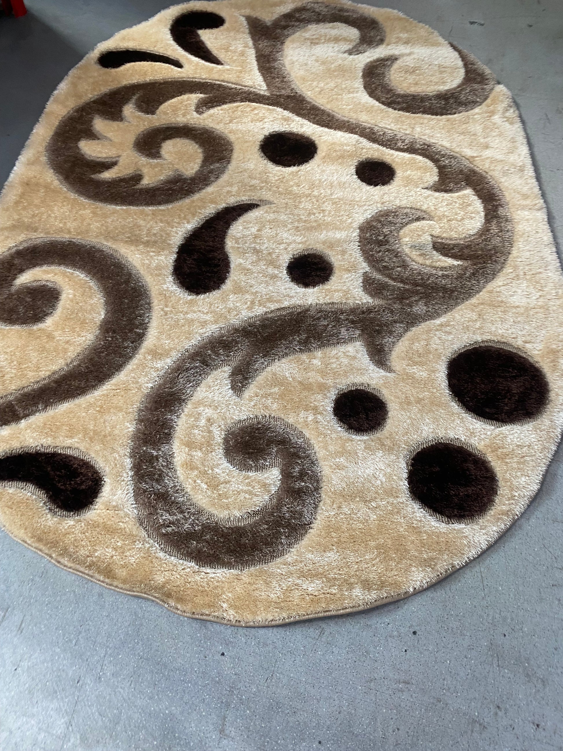Covor Pufos de Mătase și Bumbac 3D,Bej/Capucino/Maro