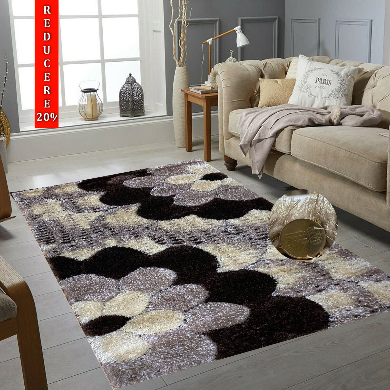 Covor Pufos de Mătase și Bumbac 3D,Bej/Capucino/Maro