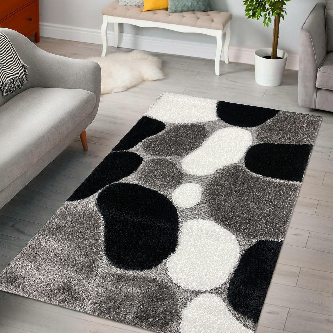 Covor Pufos Tip Pietrie ,Gri/Negru/Alb