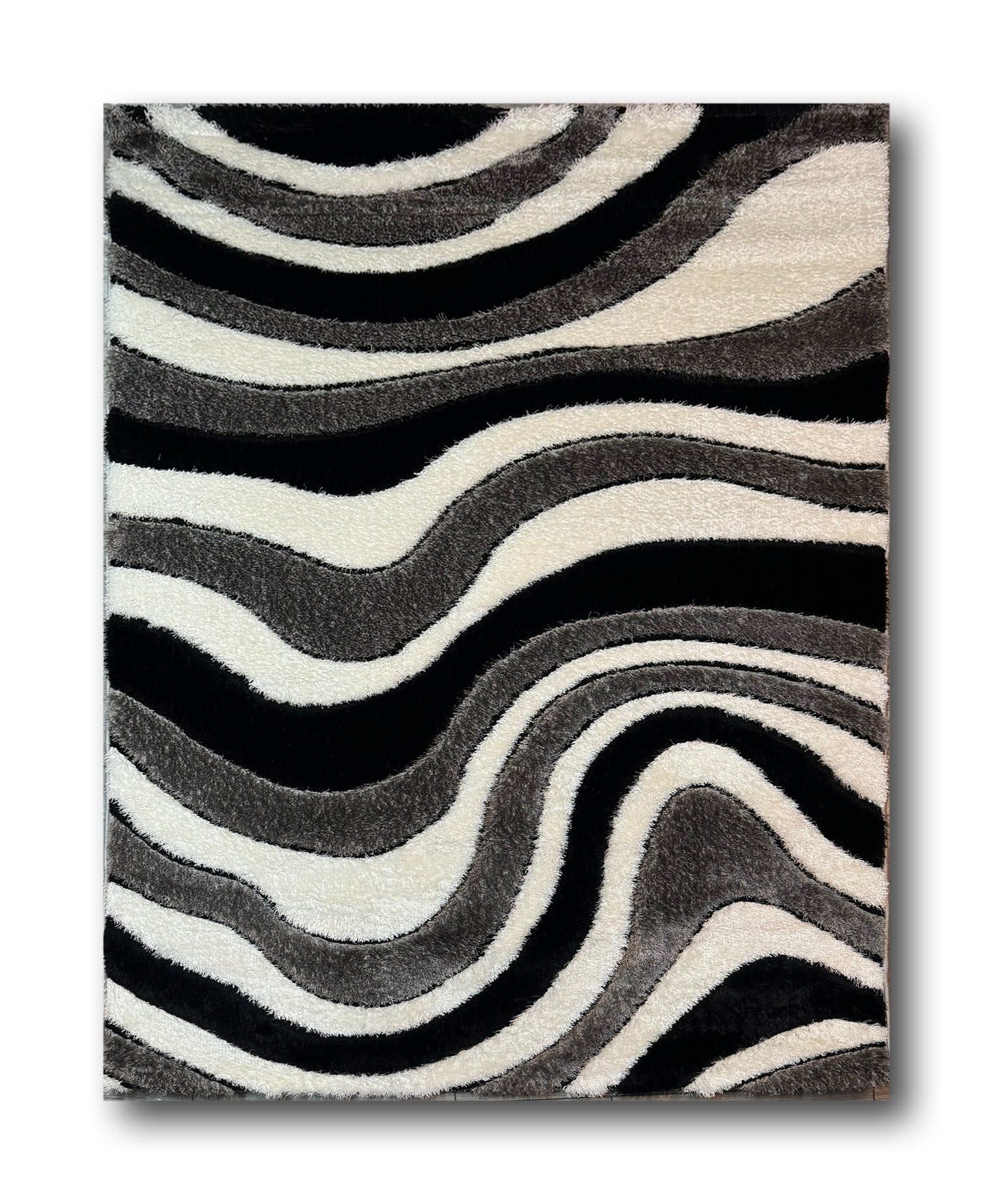 Covor Pufos 3D Tip Valuri,Gri/Negru/Alb