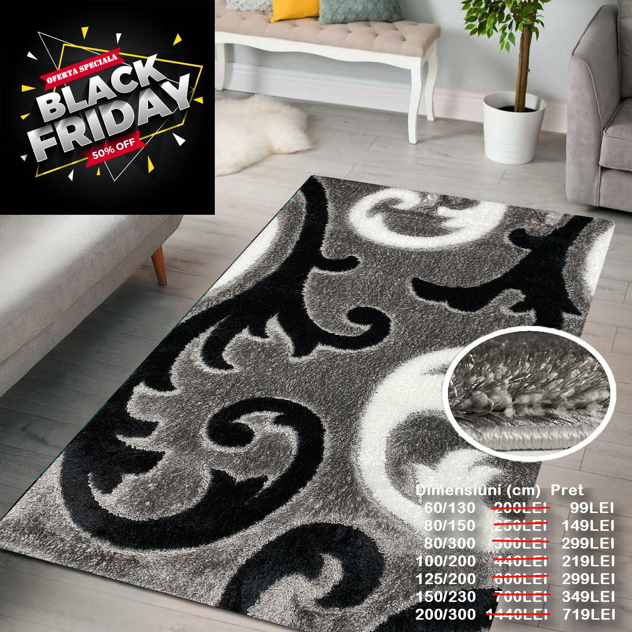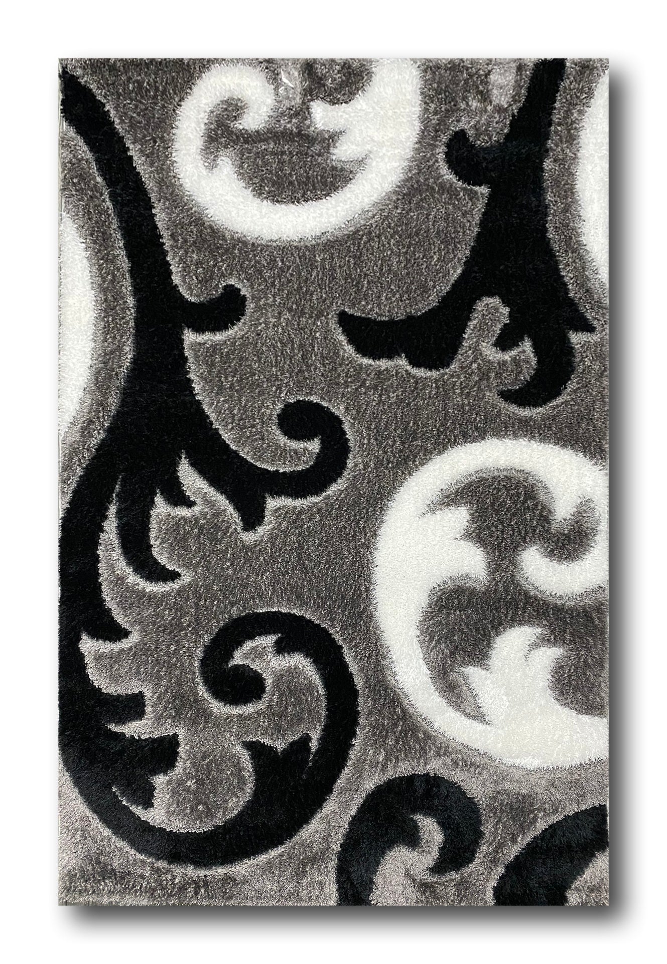 Covor Pufos cu Fir de Matase si Pufos 3D Tip Coarne,Gri/Alb/Negru