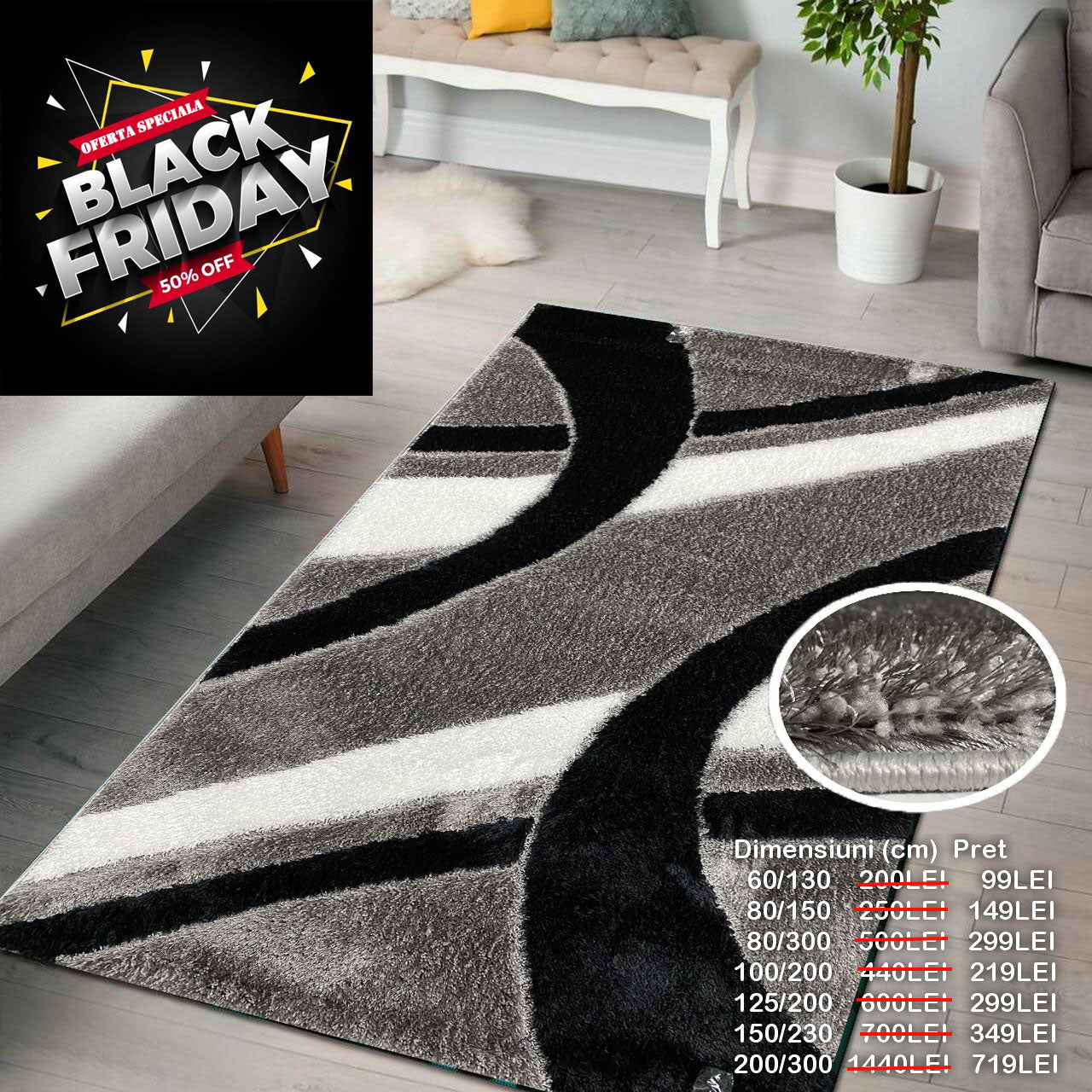 Covor Pufus cu Fir de Matase si Pufos 3D TIp Lini,Gri/Alb/Negru