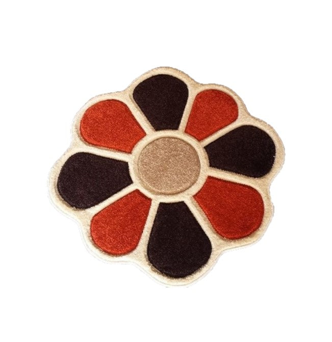 Covor Tip Floare cu Fir Scurt ,Bej/Caramiziu/Maro