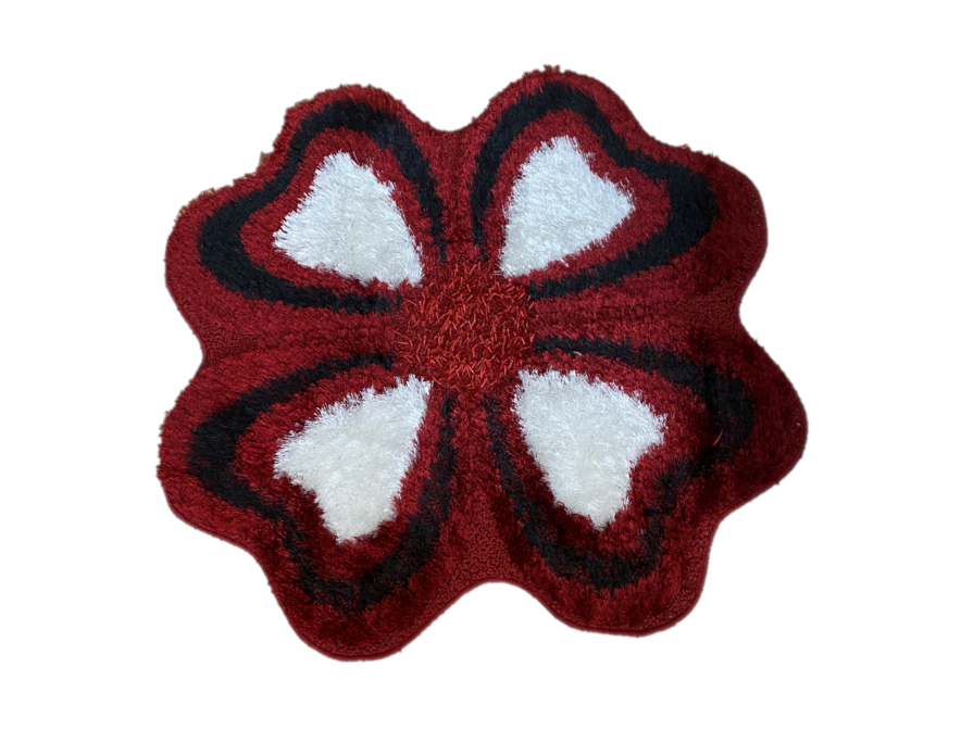 Covor Tip Floare Pufos de Matase,Rosu/Negru/Alb