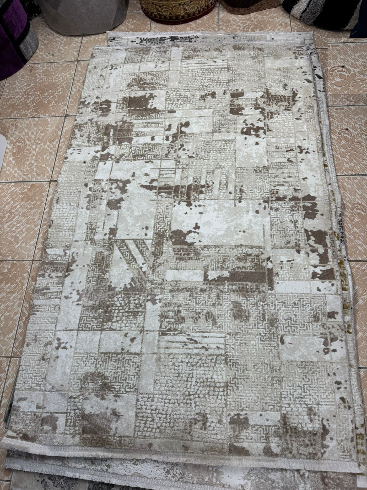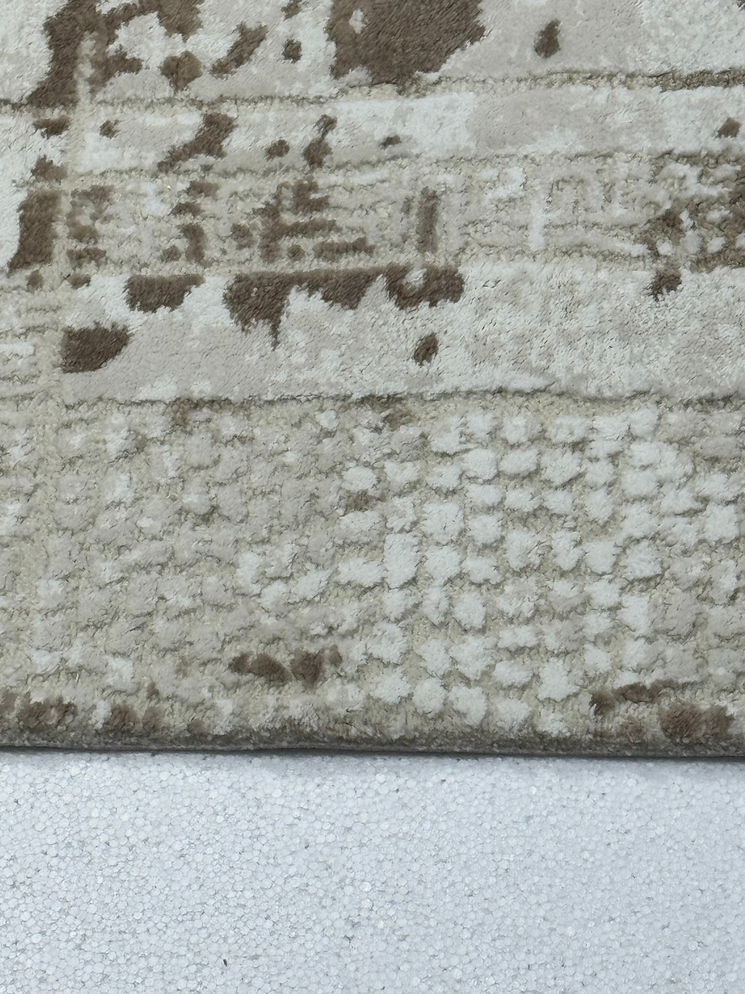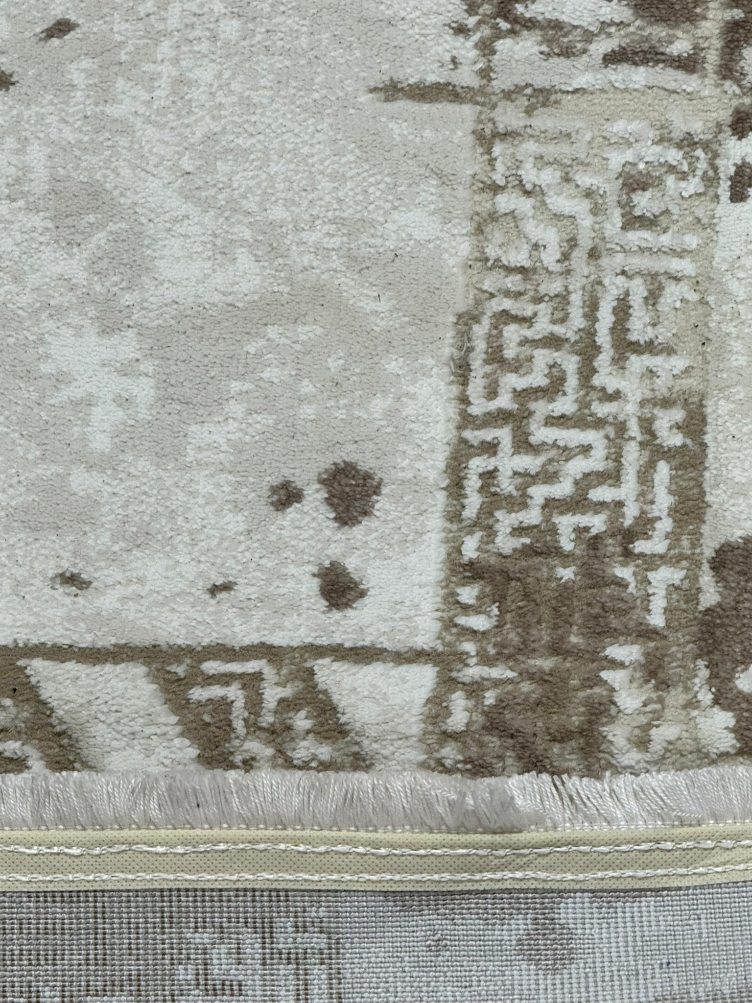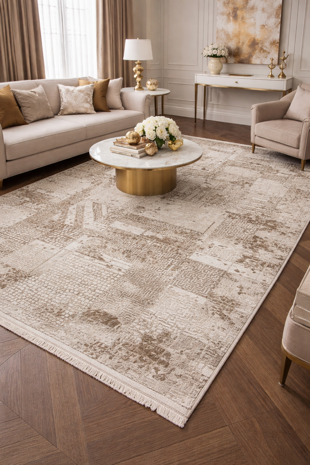 Covor Premium Modern Cu Insertii Grecesti si Franjuri,Bej/Crem