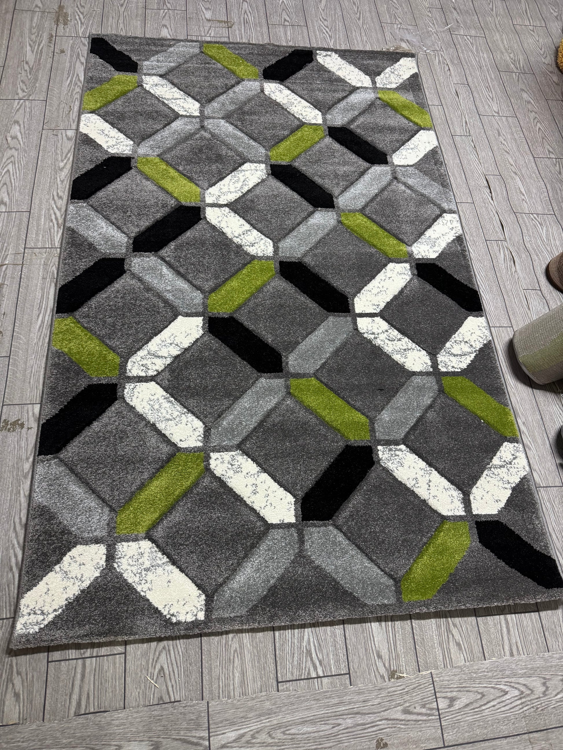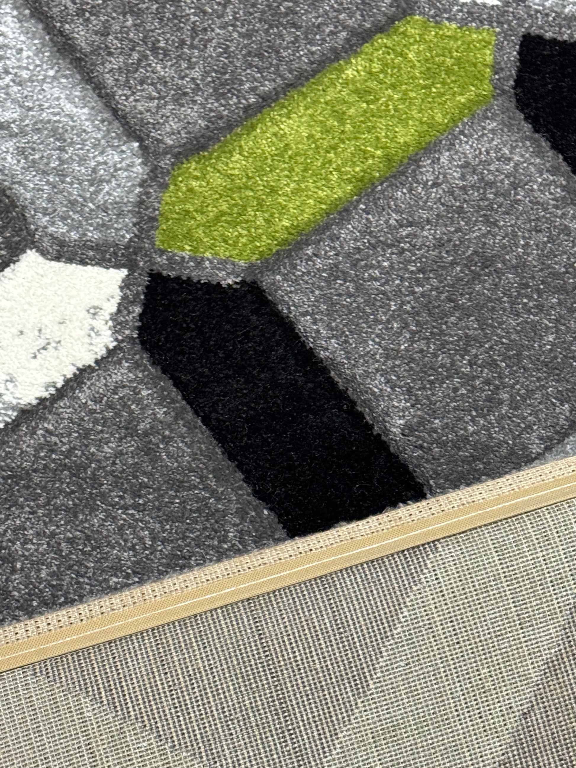 Covor Modern tip Romburi, Gri/Negru/Verde