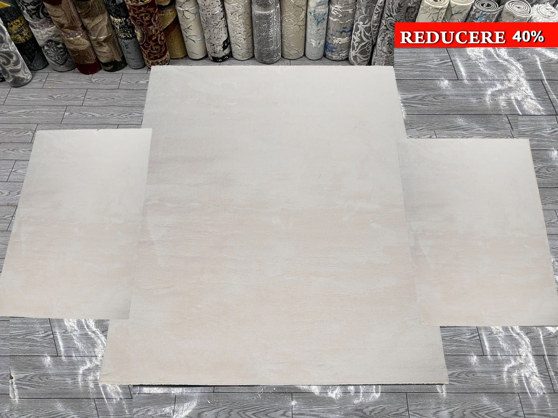 Set 3 Covoare Pufoase Pelus,Alb