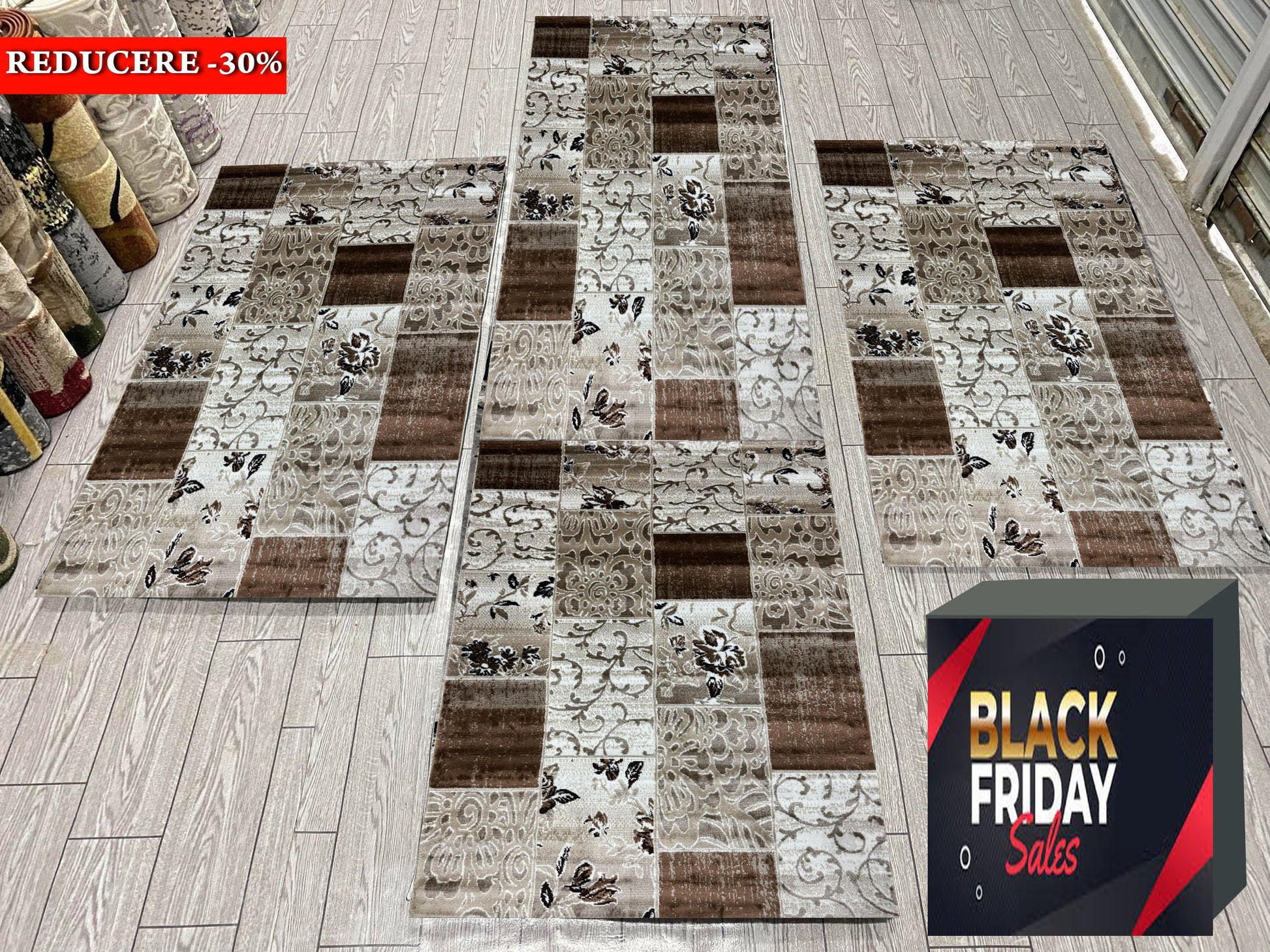 Set 3 Traverse cu Insertii Florale ,Bej/Maro