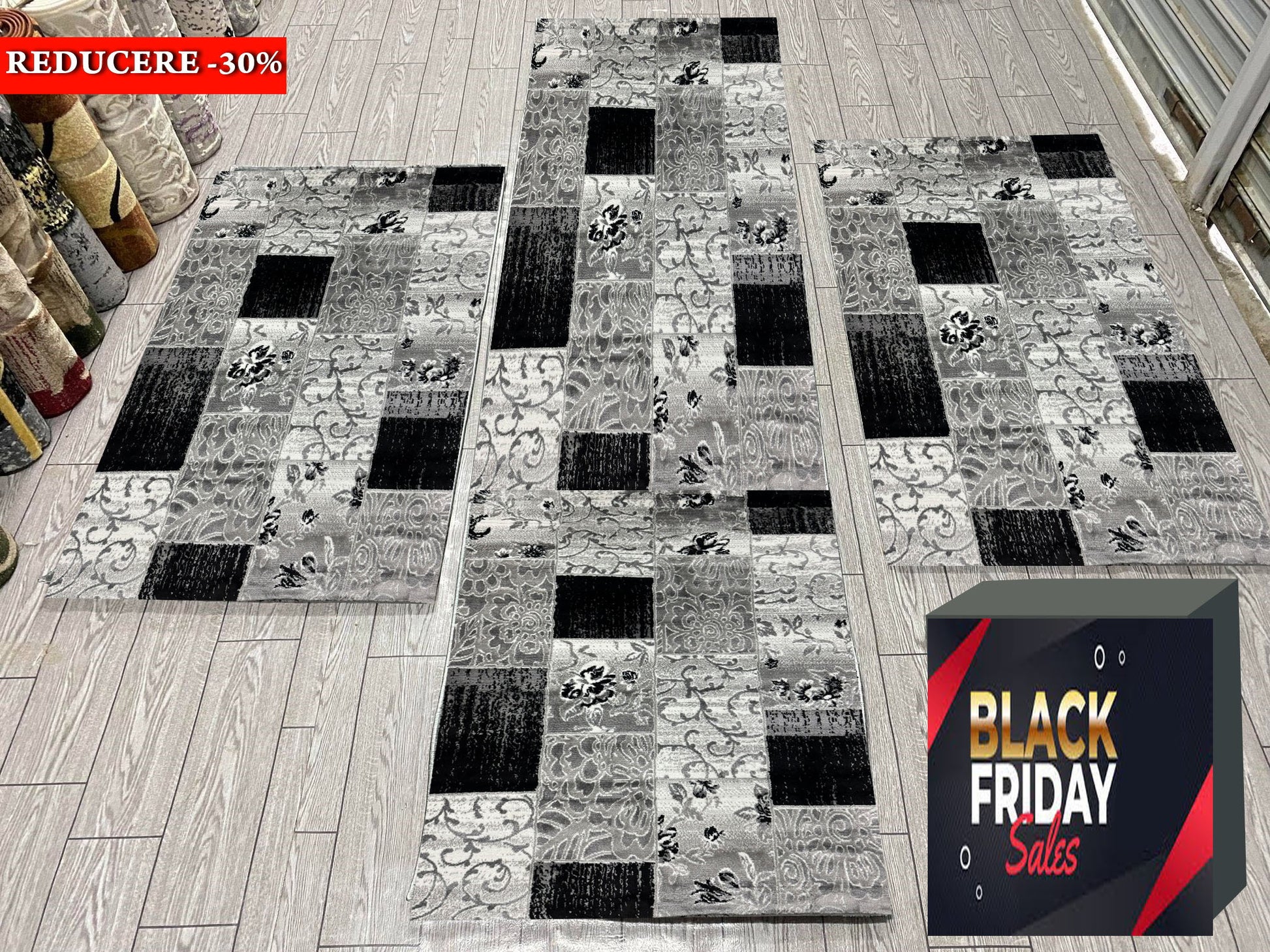 Set 3 Traverse cu Insertii Florale ,Gri/Negru/Alb