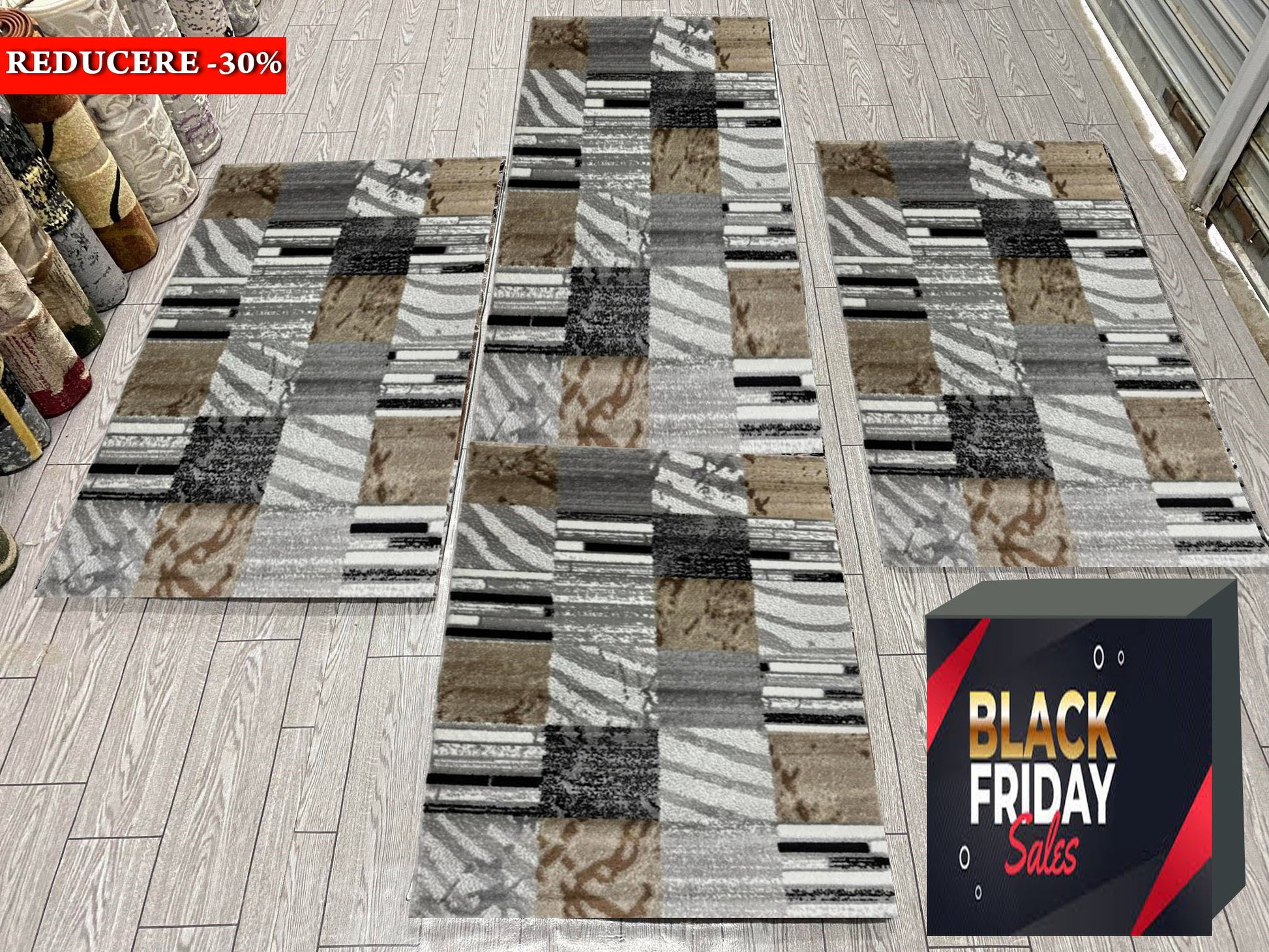 Set 3 Traverse cu Insertii Geometrice Tip Patrate ,Gri/Bej