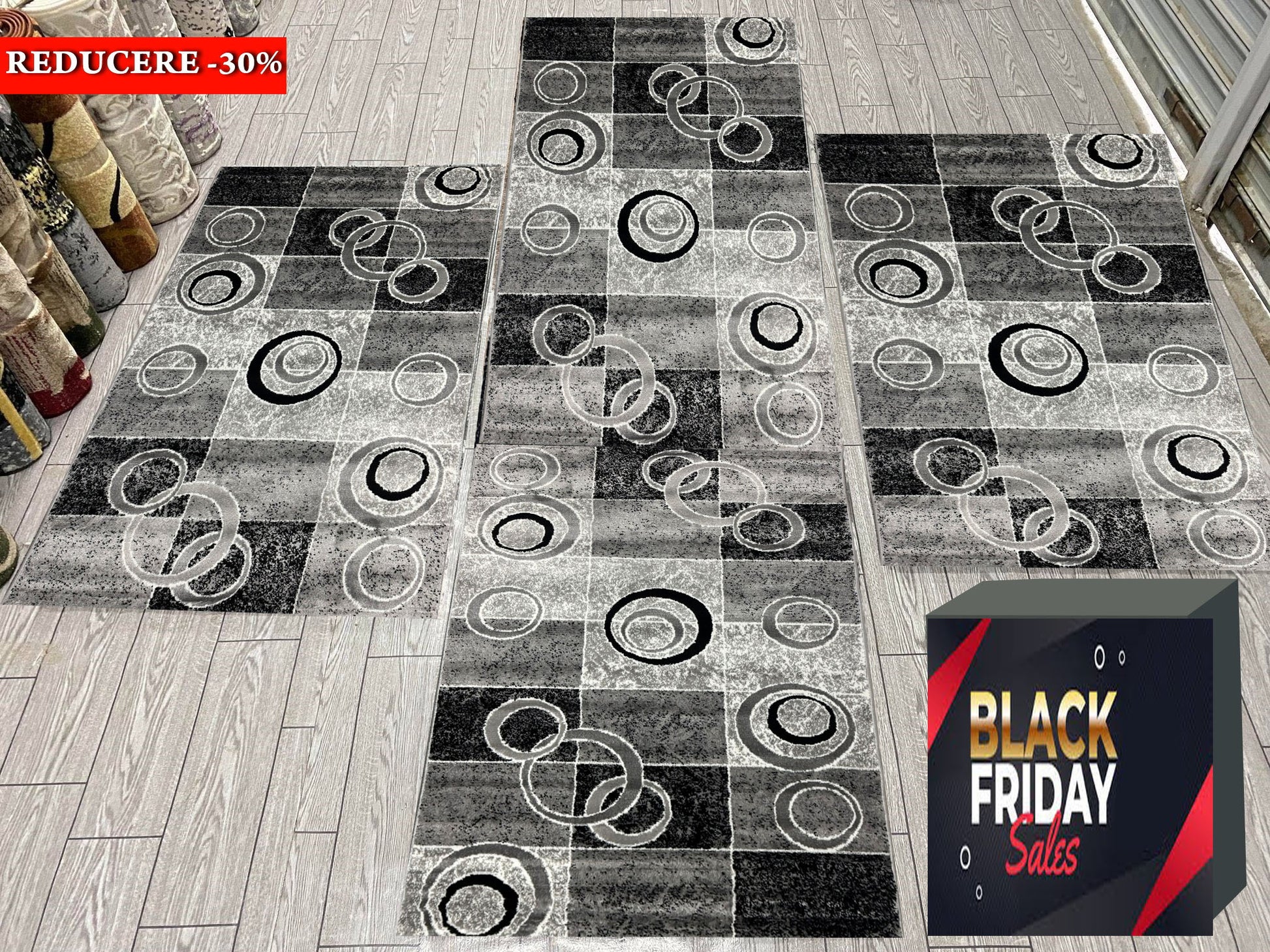 Set 3 Traverse cu Insertii Geometrice Tip Cercuri,Gri/Negru