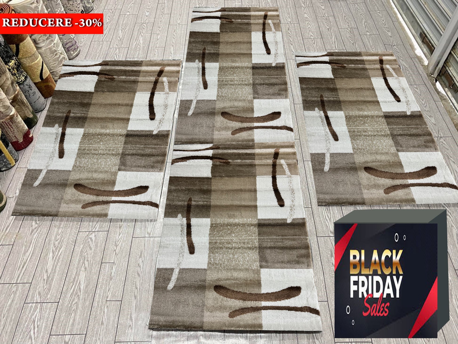 Set 3 Traverse cu Insertii Geometrice Tip Linii,Bej/Maro