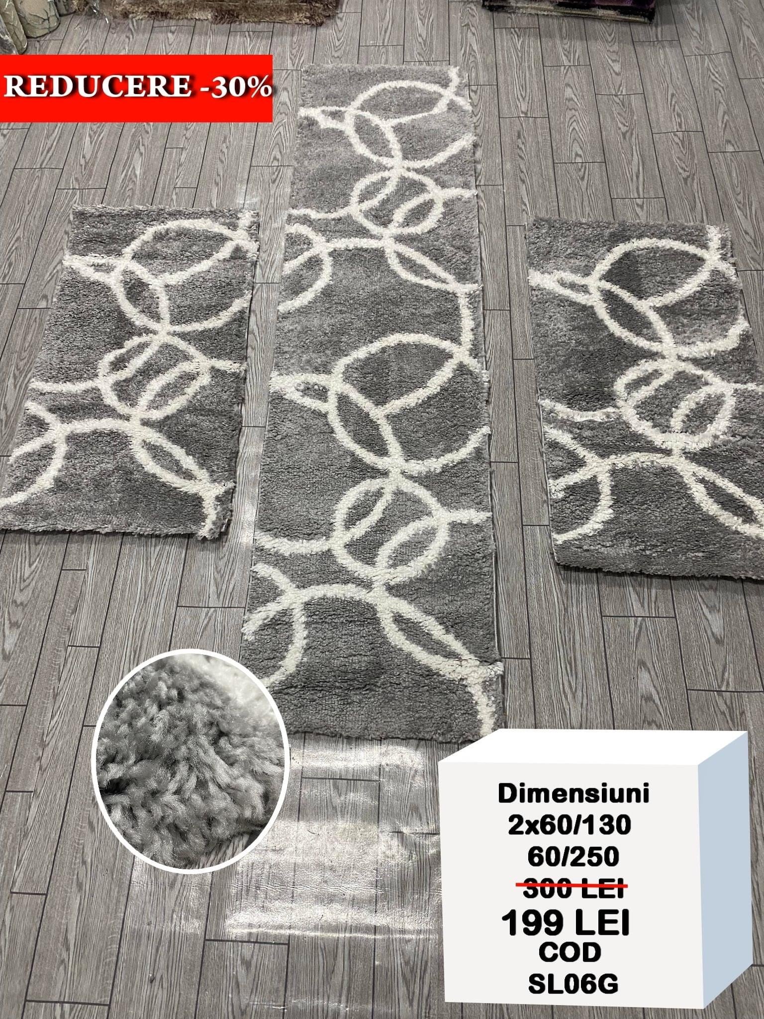 Set 3 Traverse Pufoase tip Shaggy,Gri/Alb