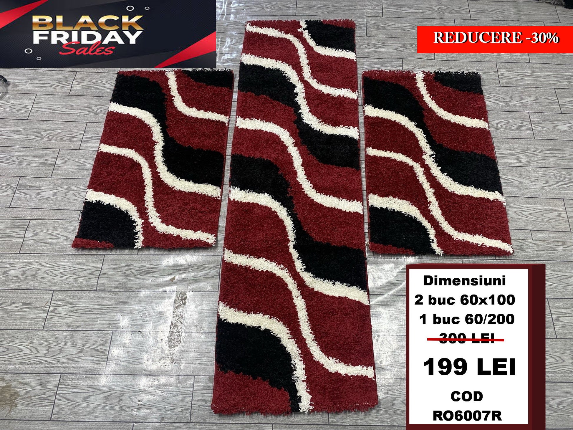 Set 3 Traverse Pufoase tip Shaggy,Rosu