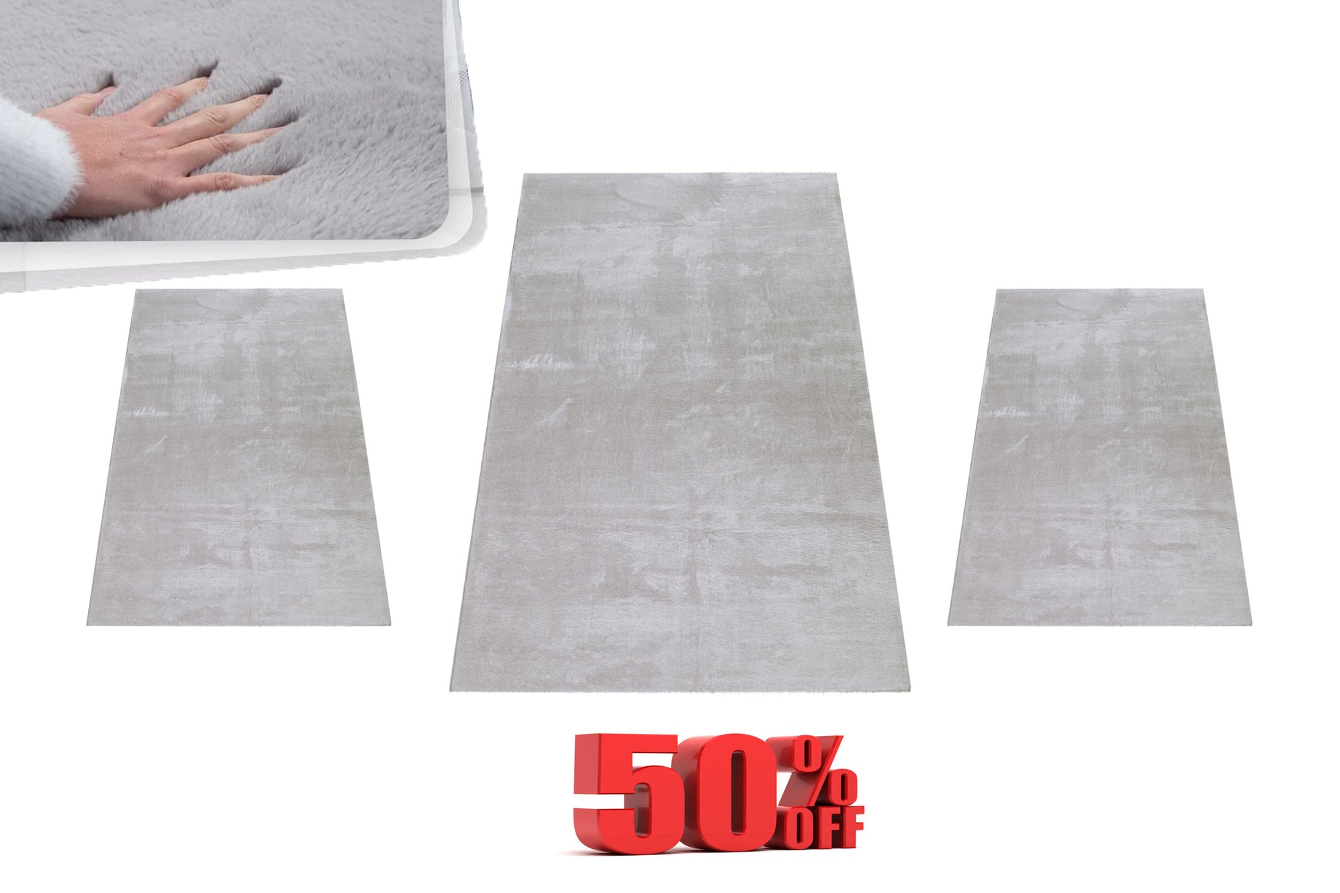 Set 3 Traverse Super Pufoase Tip Rabbit Antiderapante,Gri