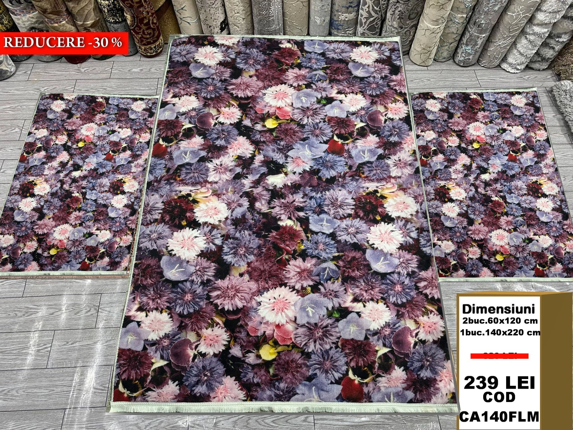 Set Covor cu Traverse Antiderapante Gradina cu Flori,Multicolor