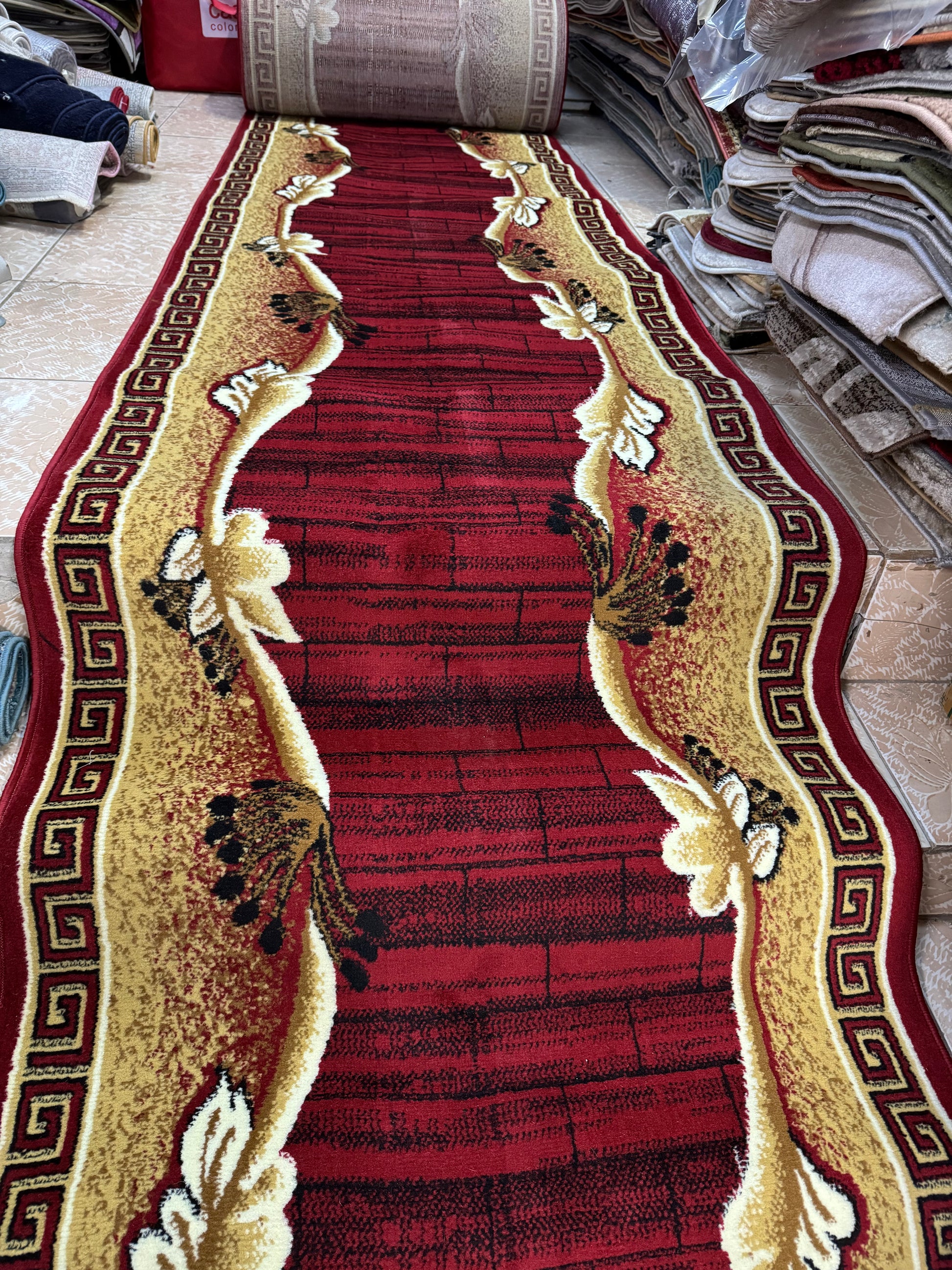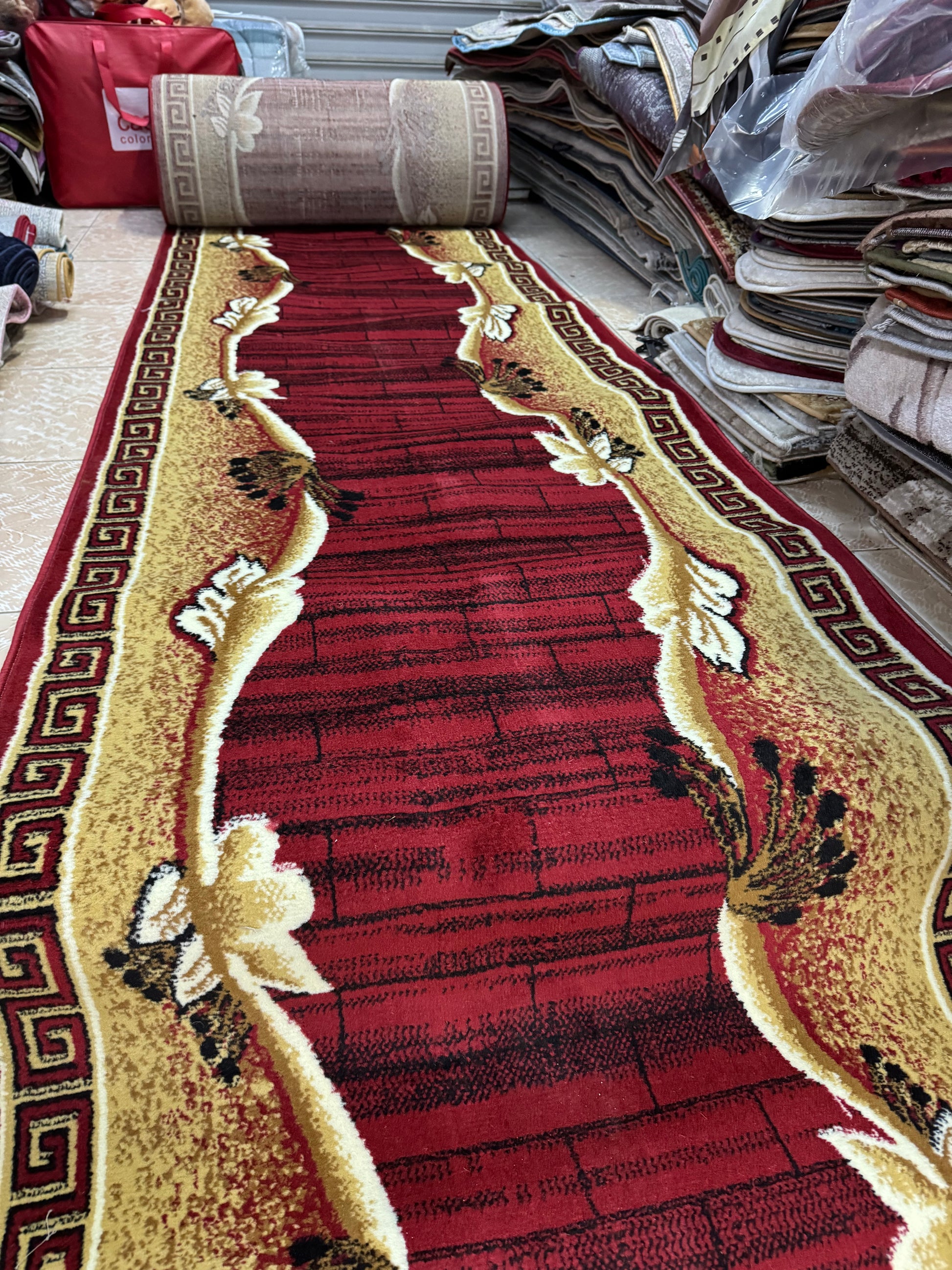 Traversa cu Insertii Florale și Chenar,Grena/Bej/Negru
