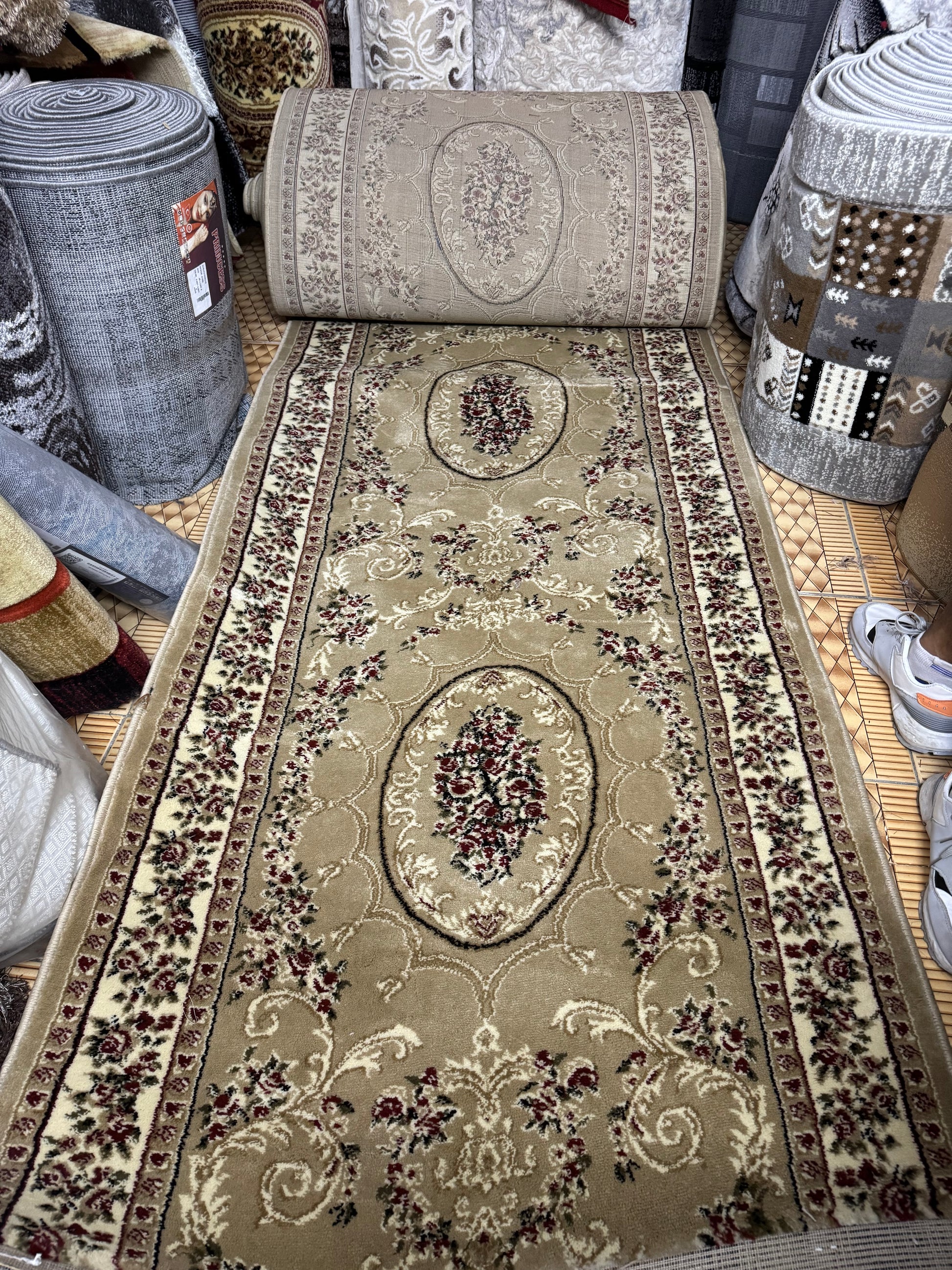 Traversa cu Insertii Florale si Medalion ,Bej/Maro