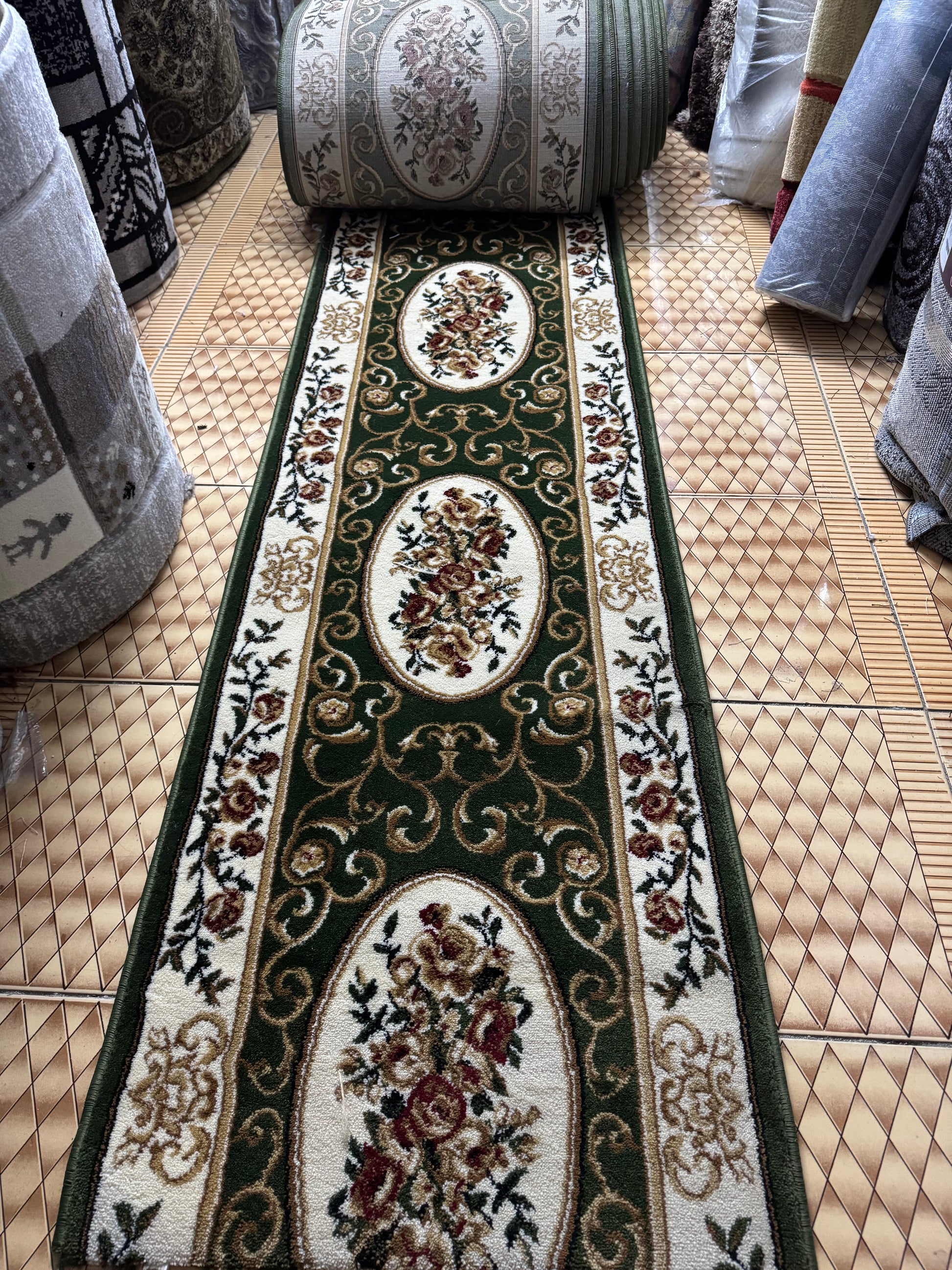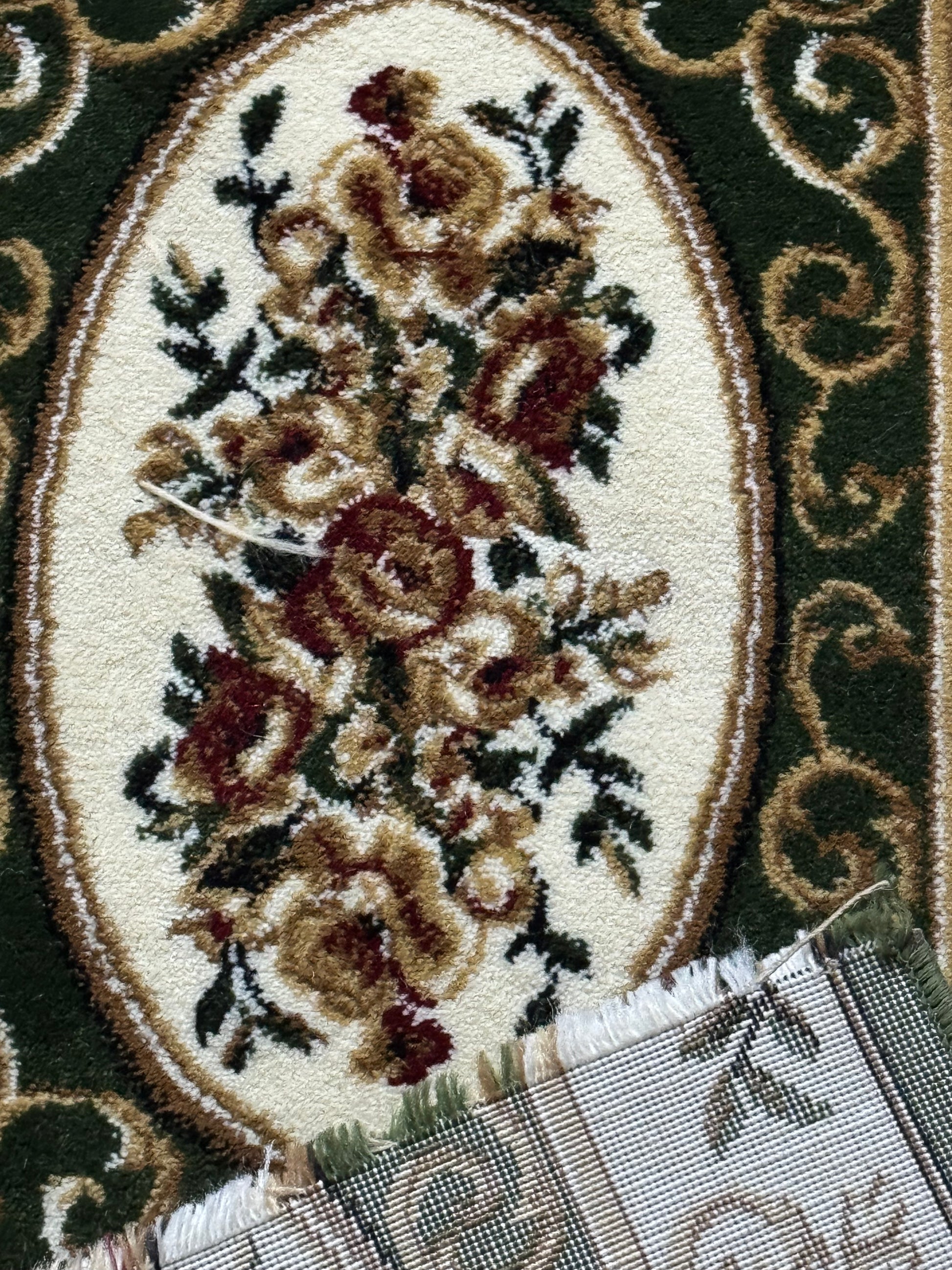Traversa cu Insertii Florale si Medalion ,Verde/Crem/Grena