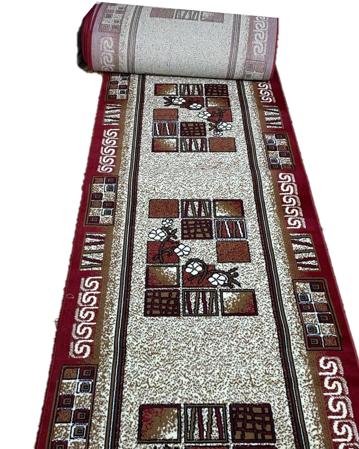 Traversa cu Insertii Florale,Grena/Bej/Negru