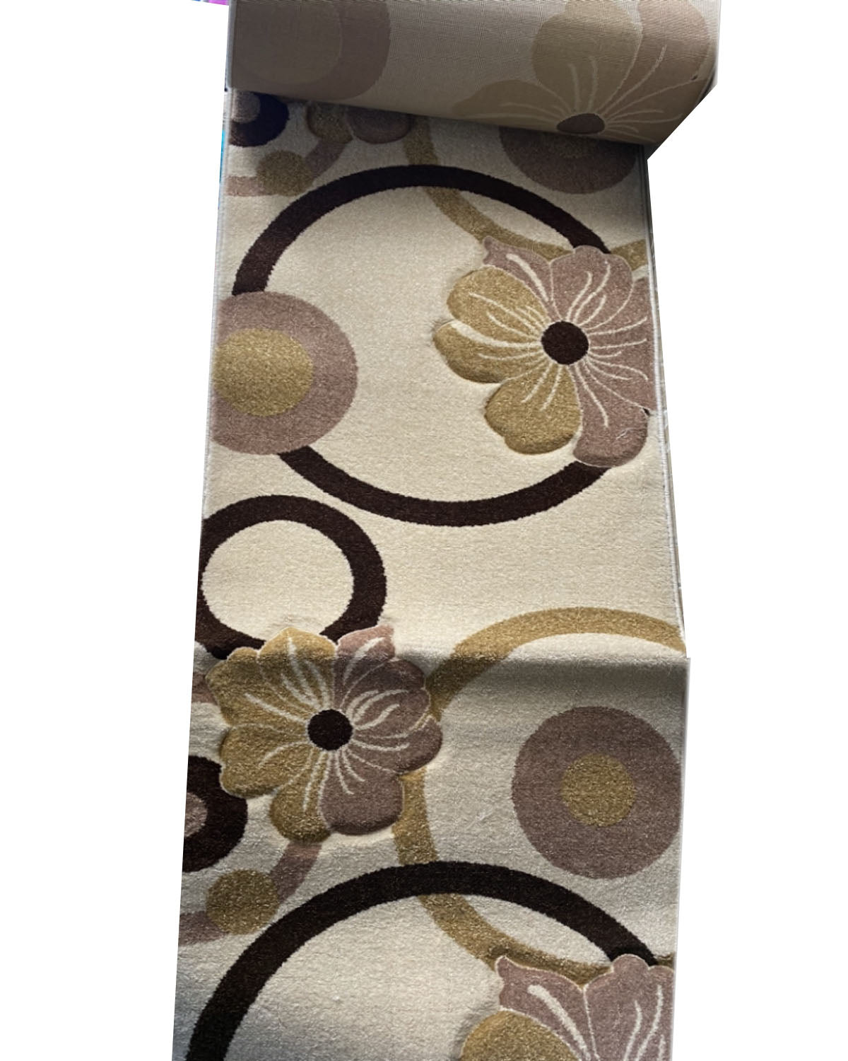 Traversa cu Insertii Florale,Bej/Maro