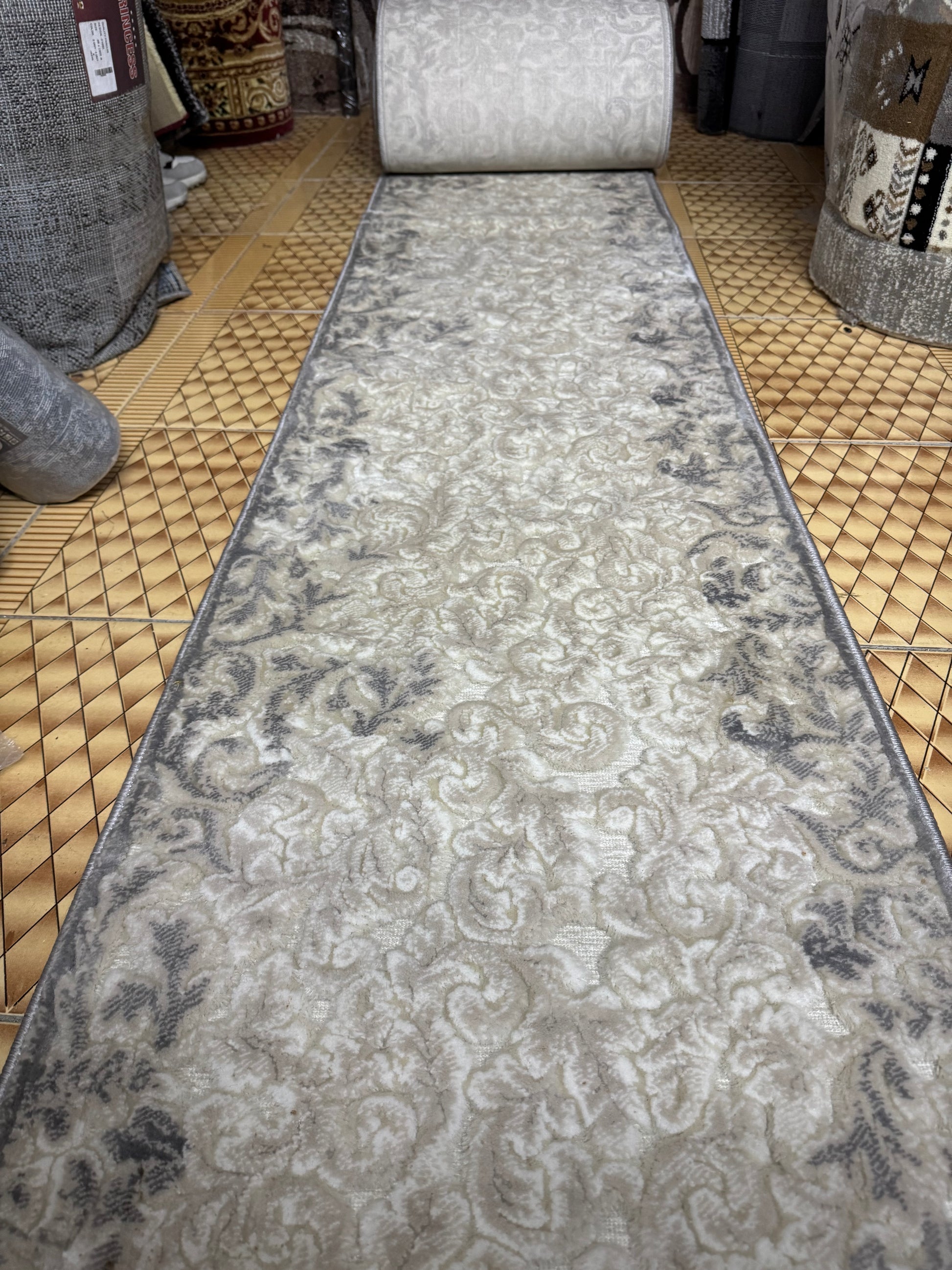 Travesa cu Insertii 3D tip Frunze ,Gri/Crem